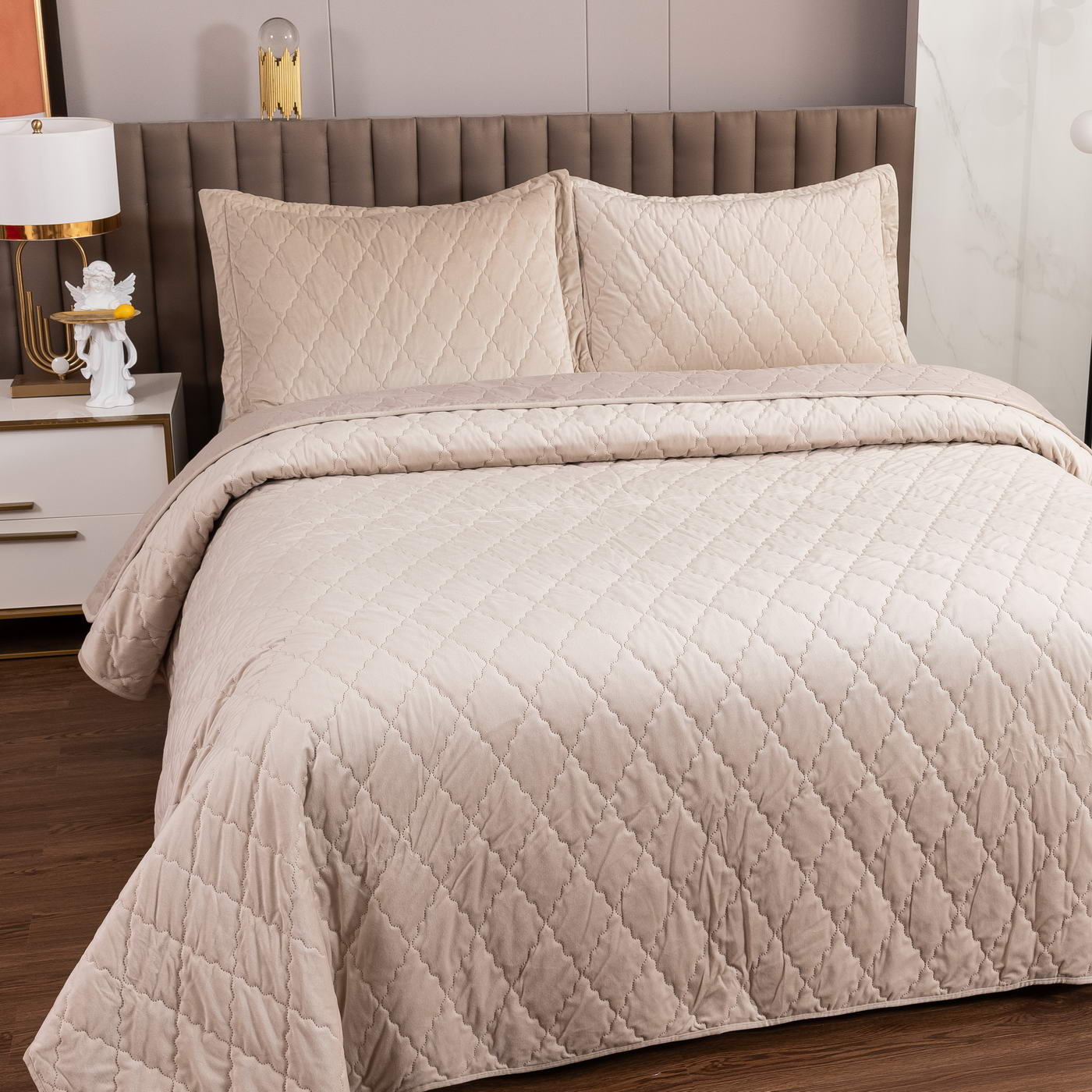Покрывало велюровое с термостежкой.Состав ткани : 100% вискозаНаполнитель: микроволокноКомплектация:Покрывало 240х280 (1шт)Наволочки 50х70+5см (2 шт)Упаковка : Текстильная сумка с фото.