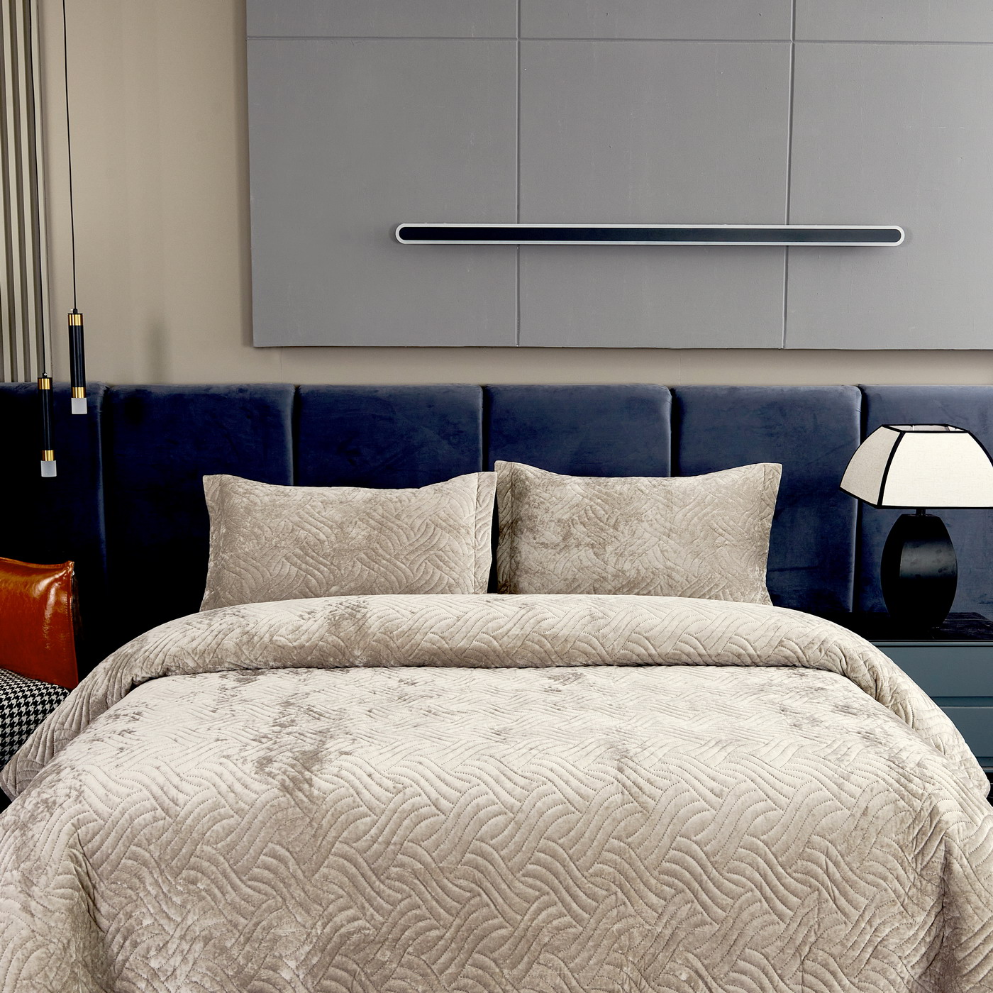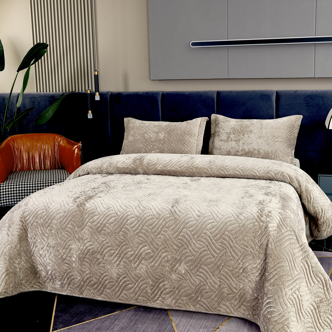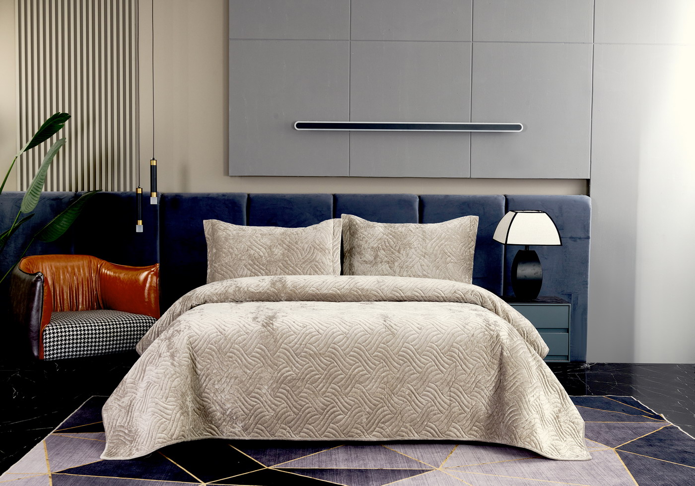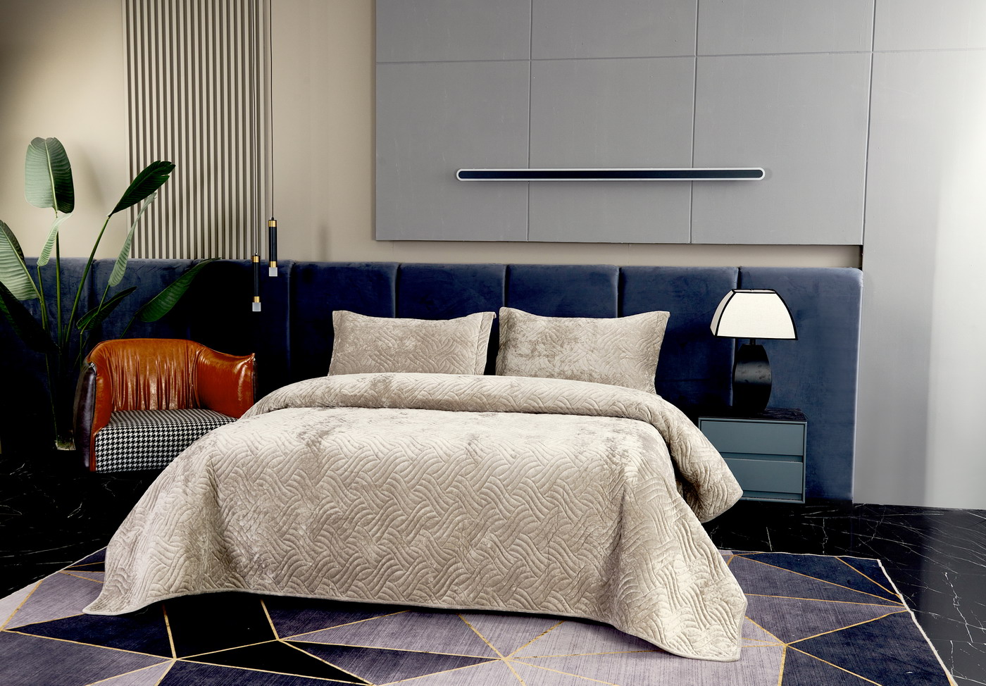Покрывало бархатноеКомплектацияПокрывало: 160х220 см (1шт);Наволочка: 50х70 см (2шт);Плотность: 430гр/м2;Состав ткани: 100% вискоза;Наполнитель: микроволокно;Декоративная стежка косичка;Пошив покрывала с кантом, наволочки с ушками 5см;Упаковка: Текстильная сумкаУход: деликатная стирка 30°C.