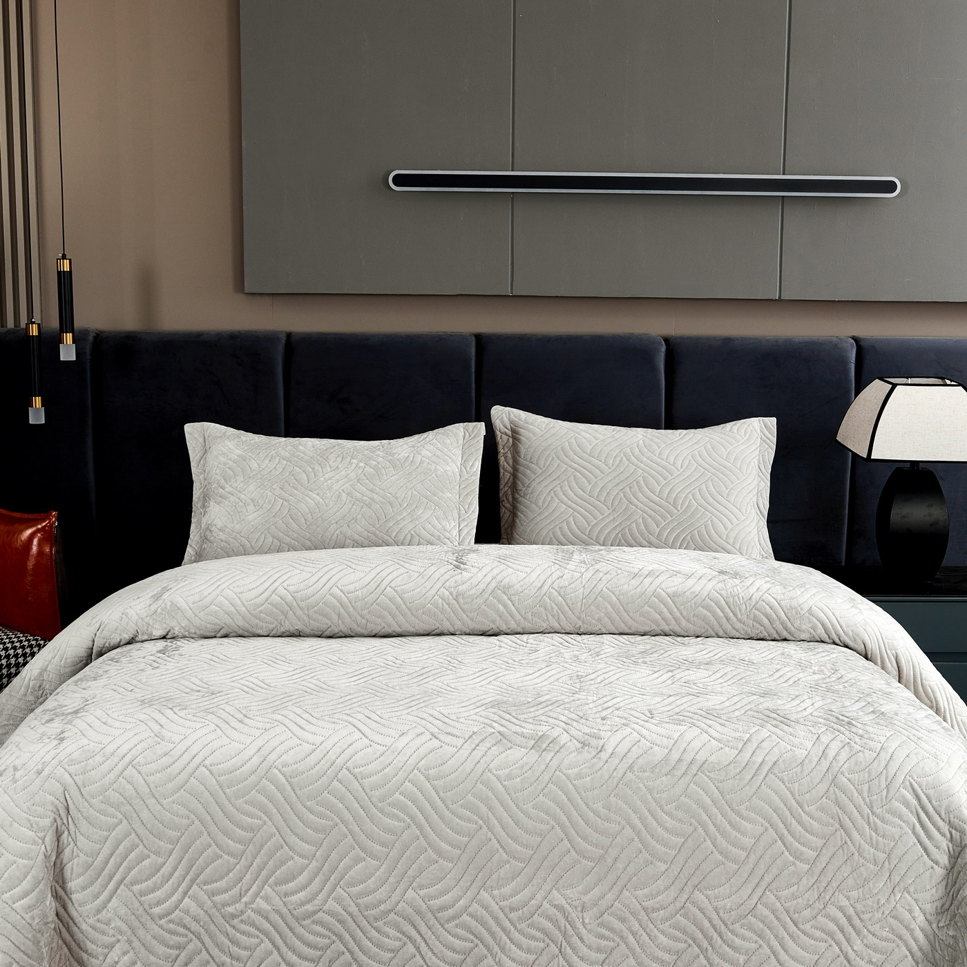 Покрывало бархатноеКомплектацияПокрывало: 240х260 см (1шт);Наволочка: 50х70 см (2шт);Плотность: 430гр/м2;Состав ткани: 100% вискоза;Наполнитель: микроволокно;Декоративная стежка косичка;Пошив покрывала с кантом, наволочки с ушками 5см;Упаковка: Текстильная сумкаУход: деликатная стирка 30°C.