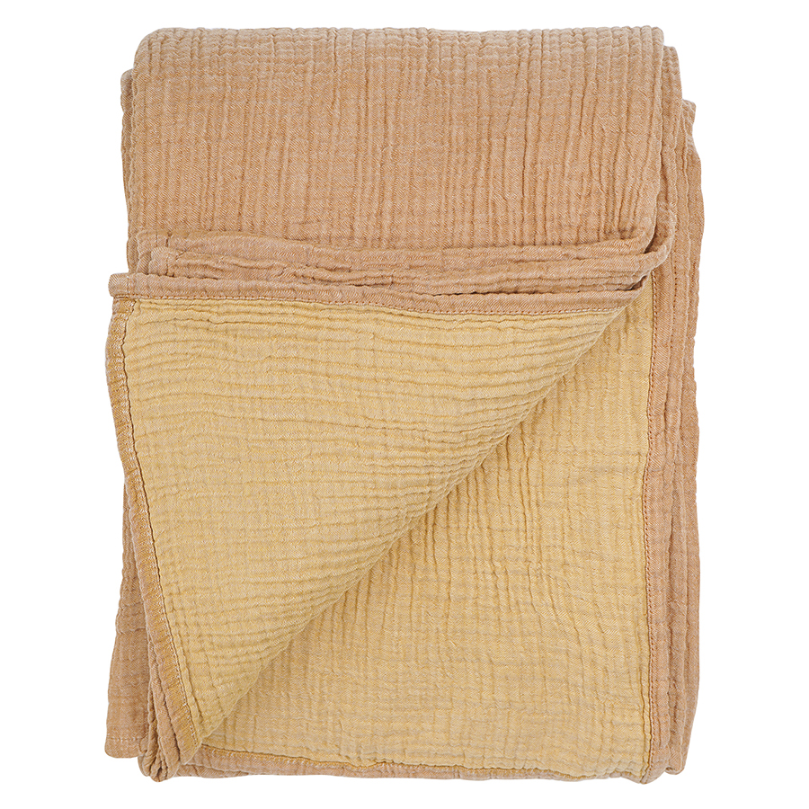 Покрывало двухстороннее из многослойного муслина цвета охры из коллекции Essential, 180х250 см, Tkano