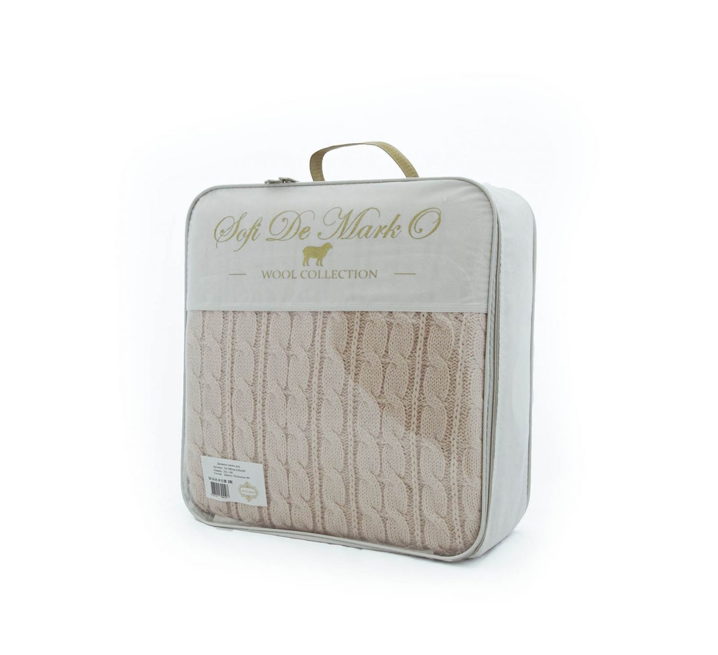 Плед вязанныйРазмер: 220х240Состав: Шерсть 70% Хлопок 30%Уход: Стирка 30'Упаковка: Текстильная сумка