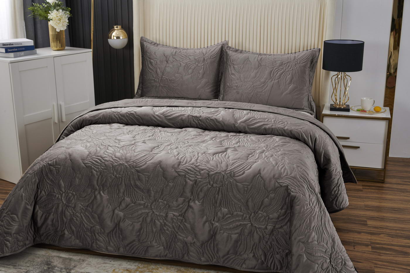 Покрывало ВелюрСостав : 100% вискоза Размер : 230х250 50х70 (2 шт)Упаковка : текстильная сумка