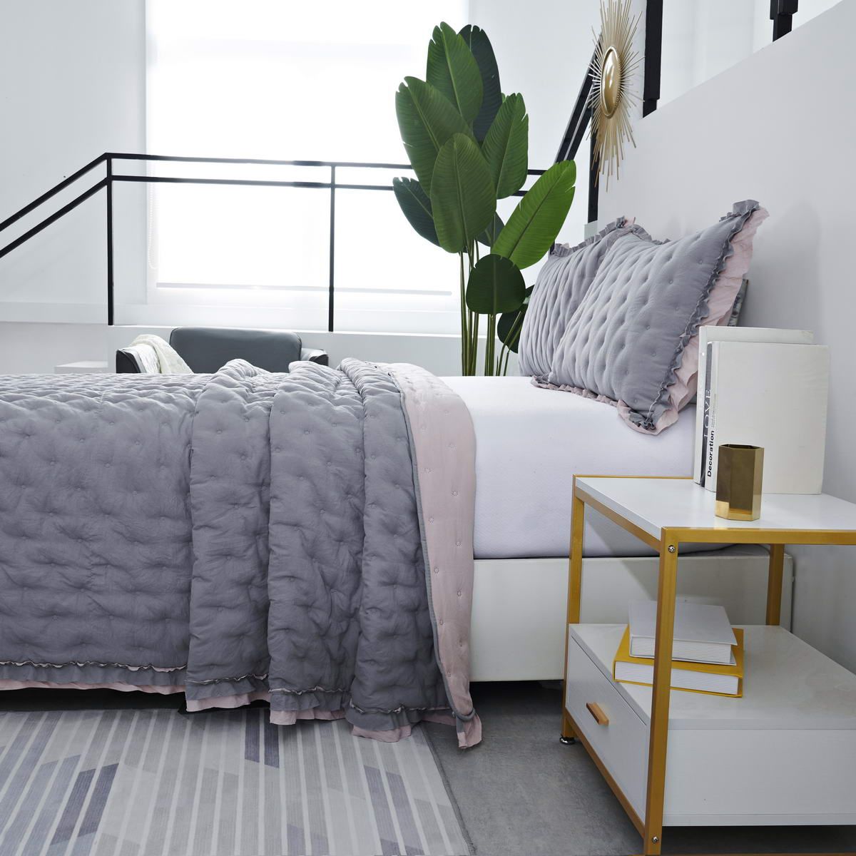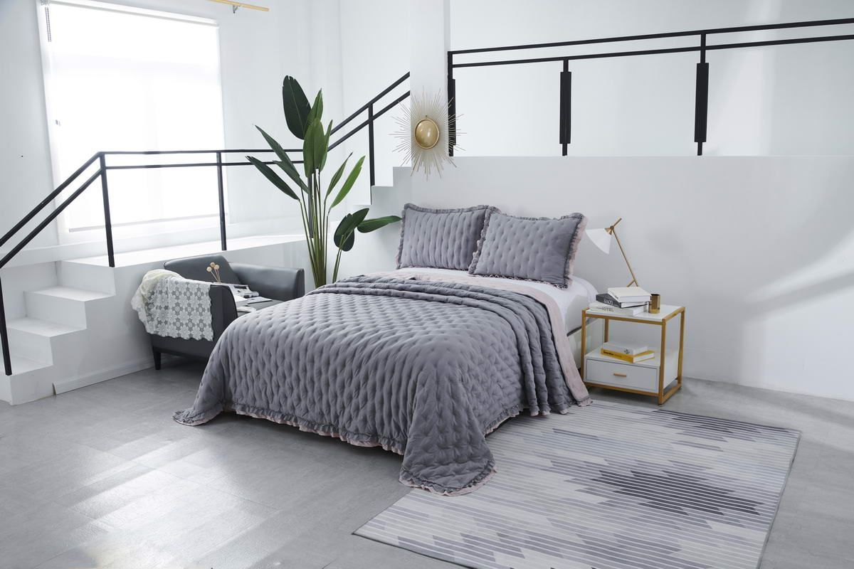 Покрывало ультрастеп двустороннееКомплектация:Покрывало: 230х250см (1шт)Наволочка: 50х70см (2шт)Состав ткани: 70% хлопок, 30% вискозаНаполнитель: микроволокноПлотность наполнителя: 100гр/м2Особенность: рюша на наволочках и покрывале; двустороннее использованиеУход: стирка 30'Упаковка: сумка ПВХ