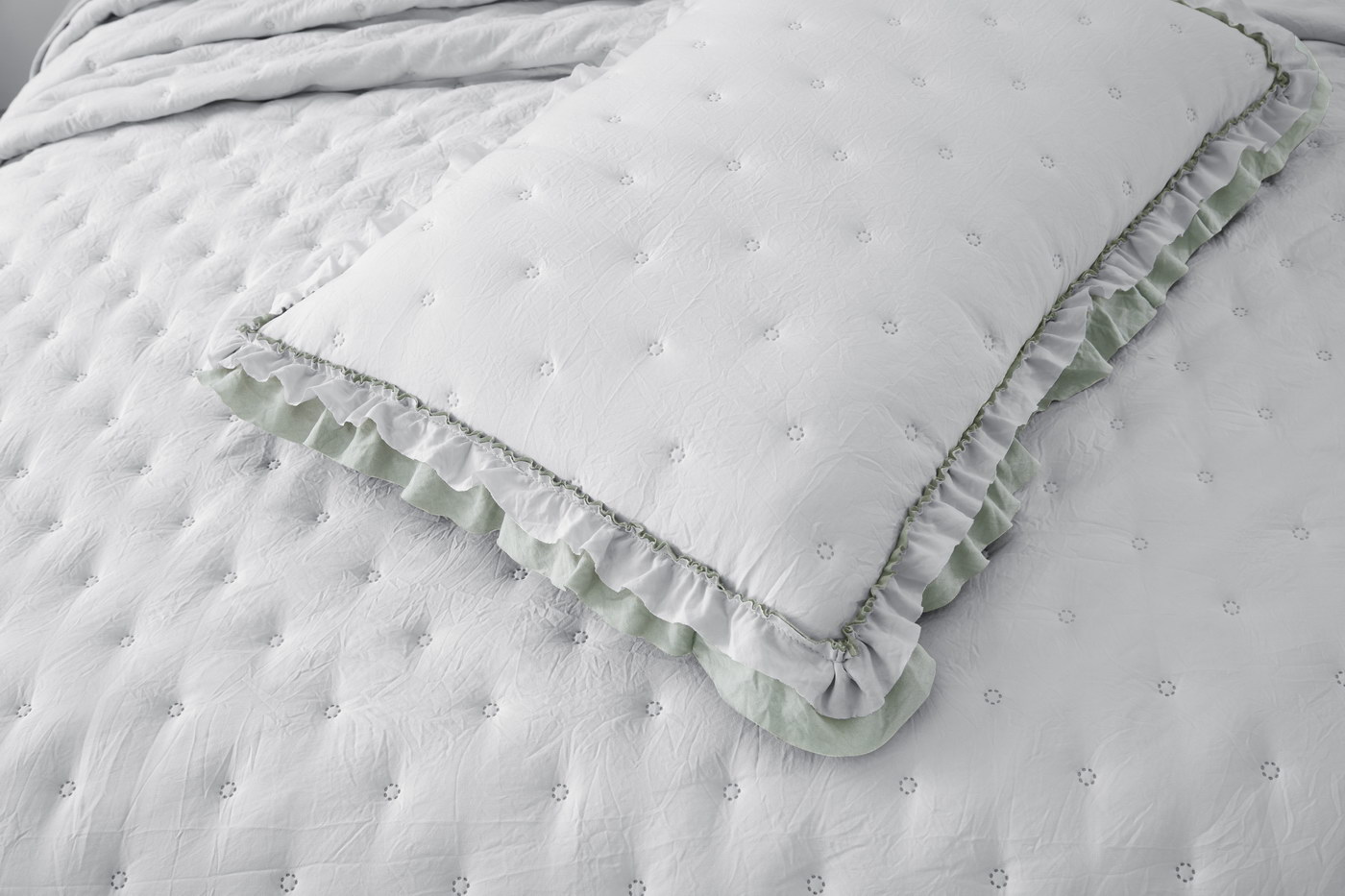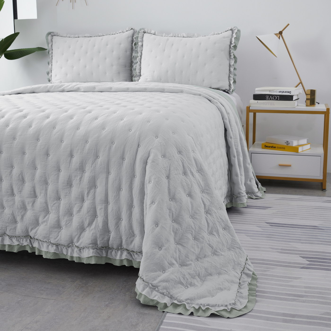 Покрывало ультрастеп двустороннееКомплектация:Покрывало: 160х220см (1шт)Наволочка: 50х70см (1шт)Состав ткани: 70% хлопок, 30% вискозаНаполнитель: микроволокноПлотность наполнителя: 100гр/м2Особенность: рюша на наволочках и покрывале; двустороннее использованиеУход: стирка 30'Упаковка: сумка ПВХ