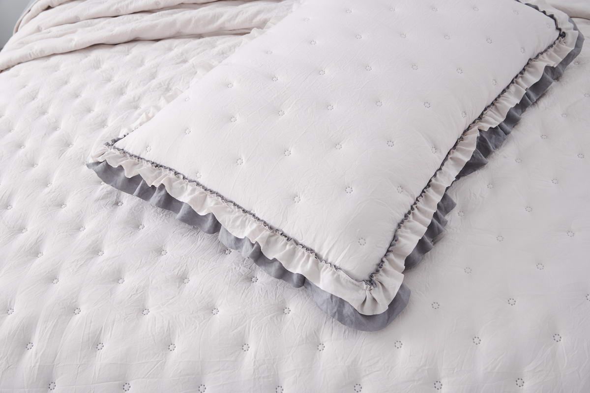 Покрывало ультрастеп двустороннееКомплектация:Покрывало: 160х220см (1шт)Наволочка: 50х70см (1шт)Состав ткани: 70% хлопок, 30% вискозаНаполнитель: микроволокноПлотность наполнителя: 100гр/м2Особенность: рюша на наволочках и покрывале; двустороннее использованиеУход: стирка 30'Упаковка: сумка ПВХ