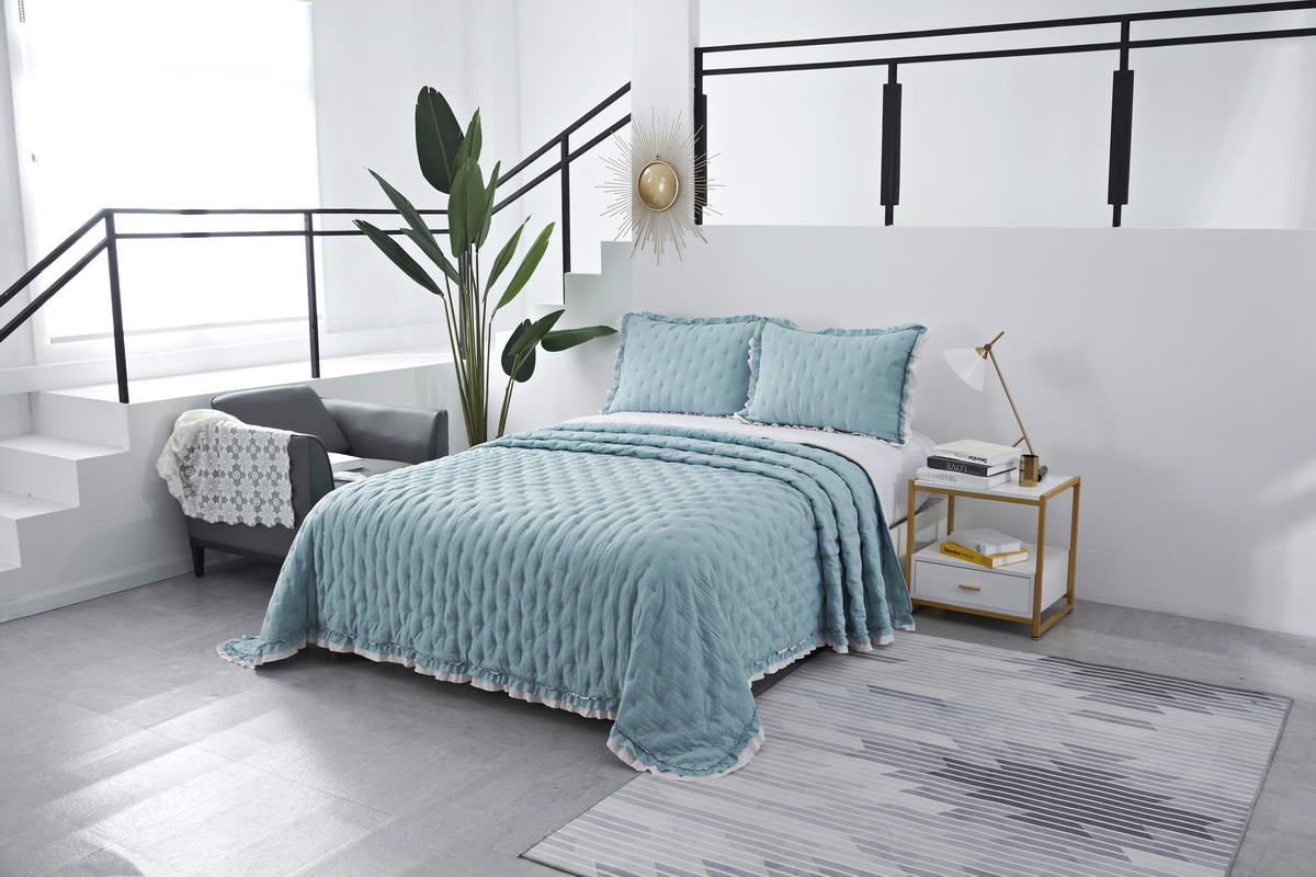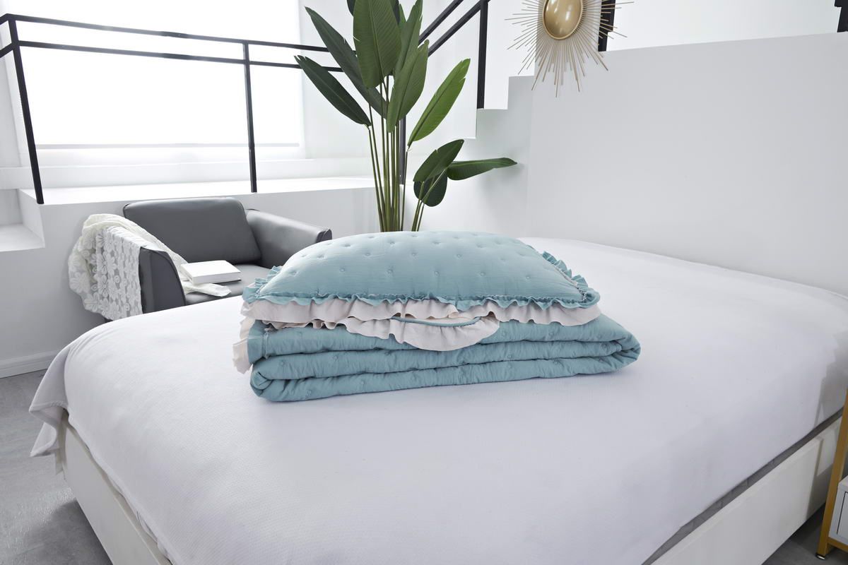 Покрывало ультрастеп двустороннееКомплектация:Покрывало: 160х220см (1шт)Наволочка: 50х70см (1шт)Состав ткани: 70% хлопок, 30% вискозаНаполнитель: микроволокноПлотность наполнителя: 100гр/м2Особенность: рюша на наволочках и покрывале; двустороннее использованиеУход: стирка 30'Упаковка: сумка ПВХ