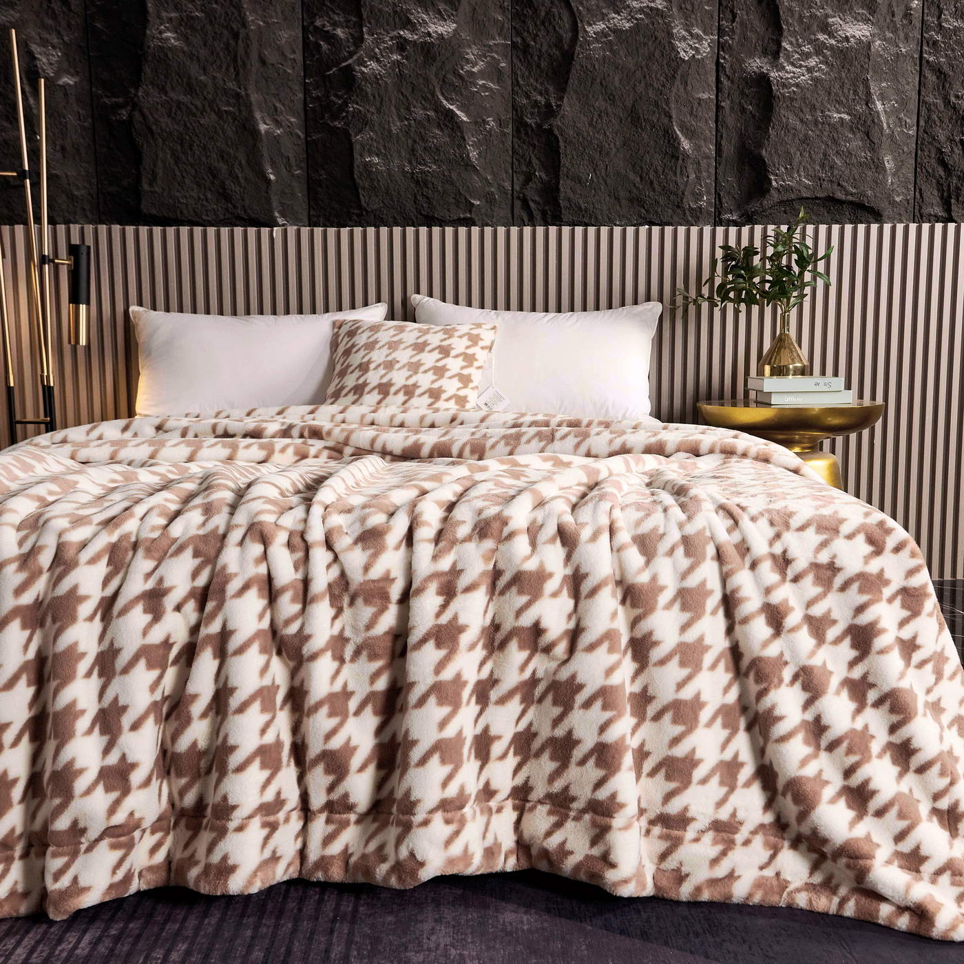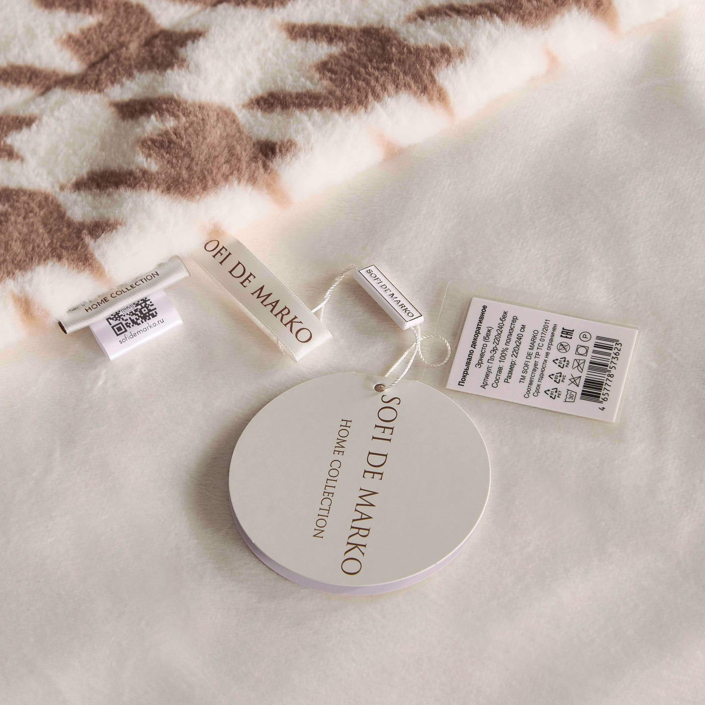 Покрывало декоративноеРазмер: 160х220 (1шт);Ткань: искусственный мех с принтомПлотность: 620 гр/м2Состав: 100% полиэстер;Упаковка: текстильная сумка;Уход: Стирка 30°C
