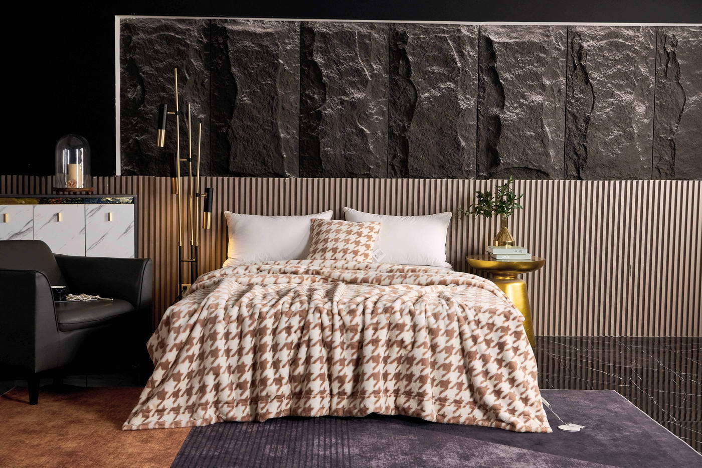 Покрывало декоративноеРазмер: 220х240 (1шт);Ткань: искусственный мех с принтомПлотность: 620 гр/м2Состав: 100% полиэстер;Упаковка: текстильная сумка;Уход: Стирка 30°C