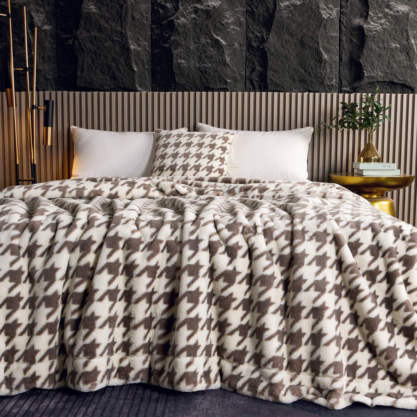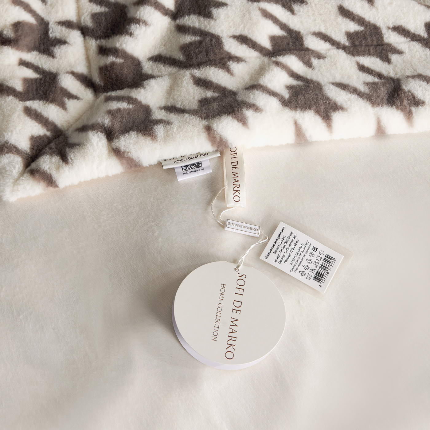 Покрывало декоративноеРазмер: 220х240 (1шт);Ткань: искусственный мех с принтомПлотность: 620 гр/м2Состав: 100% полиэстер;Упаковка: текстильная сумка;Уход: Стирка 30°C