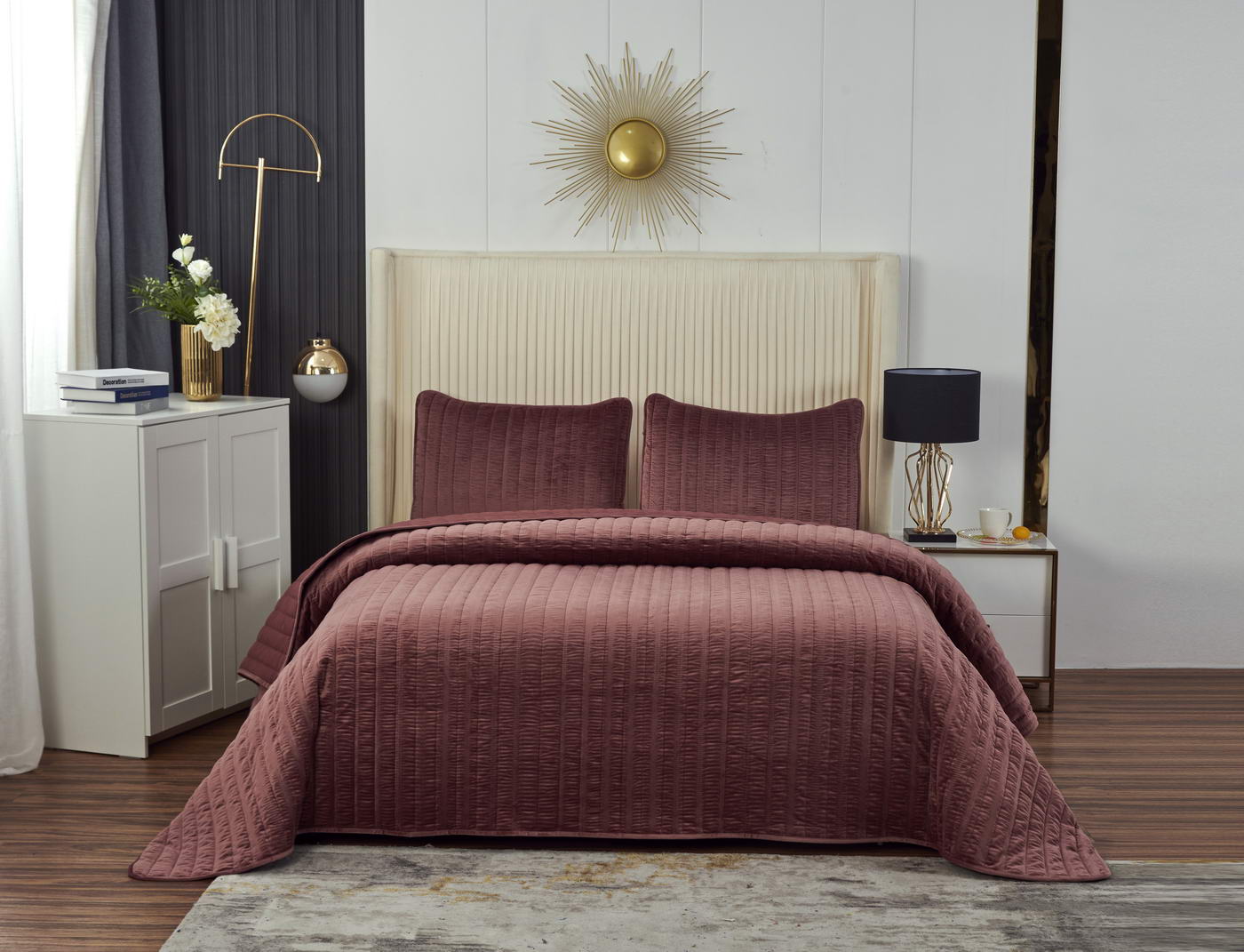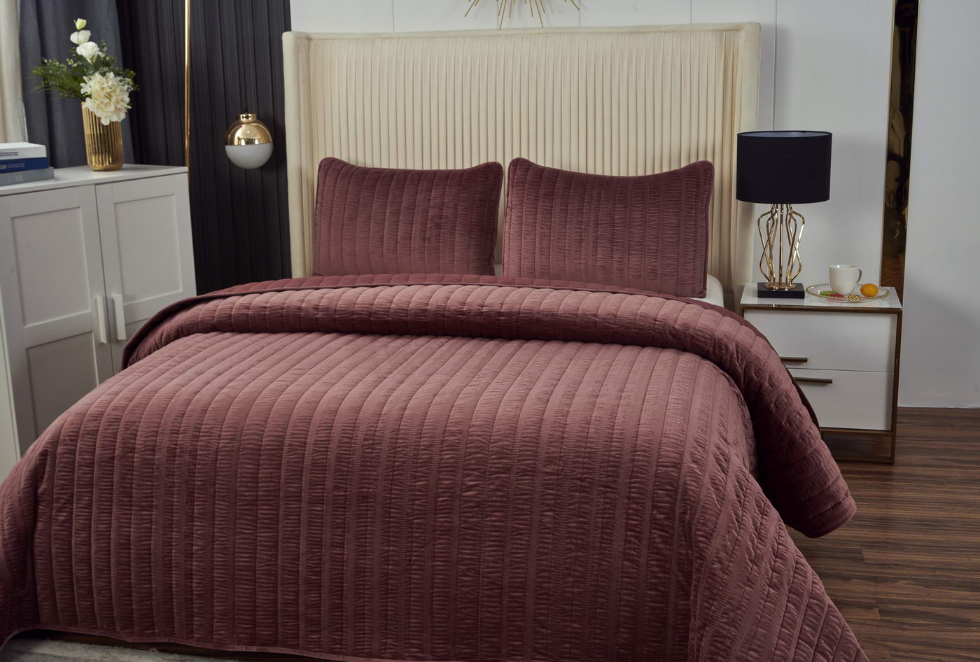 Покрывало Велюр ЖаткаСостав : 100% полиэстер Размер : 240х260 50х70 (2 шт)Упаковка : текстильная сумка