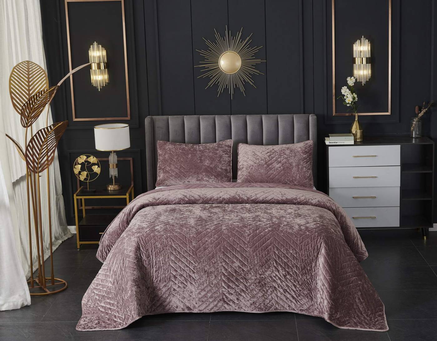 ПокрывалоКомплектация:Покрывало: 240х260Наволочки: 50х70 (2шт)Ткань: бархатОсобенность: термостежка Состав: 100% ВискозаУпаковка: текстильная сумкаУход. Стирка 30'