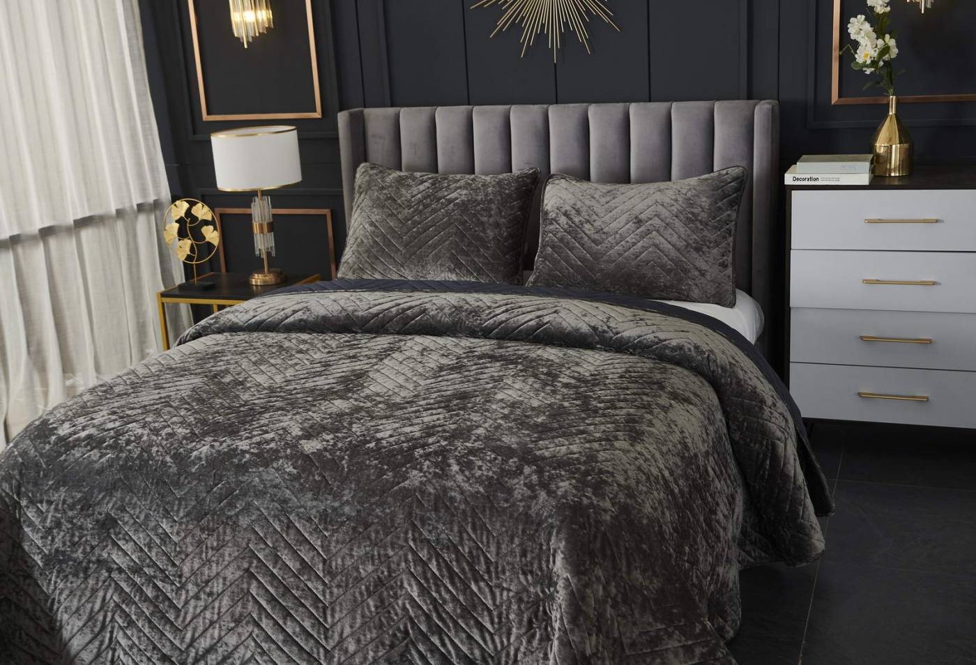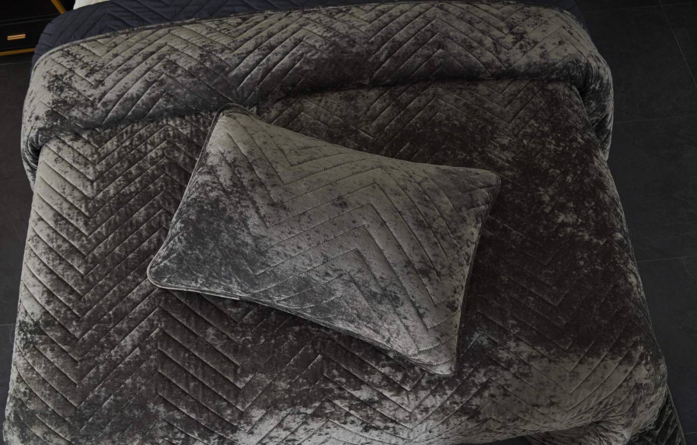 ПокрывалоКомплектация:Покрывало: 240х260Наволочки: 50х70 (2шт)Ткань: бархатОсобенность: термостежка Состав: 100% ВискозаУпаковка: текстильная сумкаУход. Стирка 30'