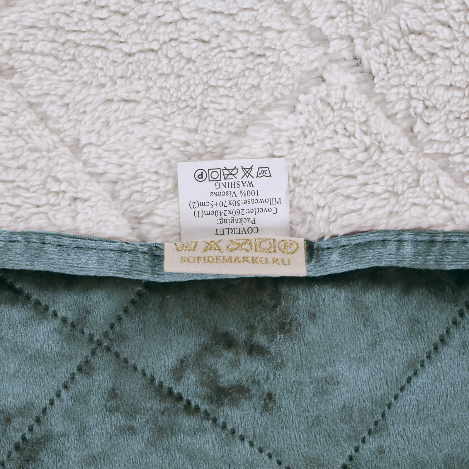 Покрывало ГалаксияКомплектация:Покрывало: 240х260Наволочка: 50х70 (2шт)Верхняя часть покрывала бархат, низ - искуственный мех.Состав: 100% ВискозаУпаковка: текстильная сумкаУход. Стирка 30'