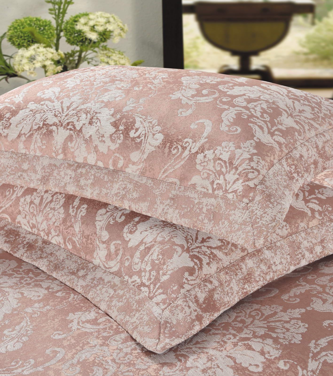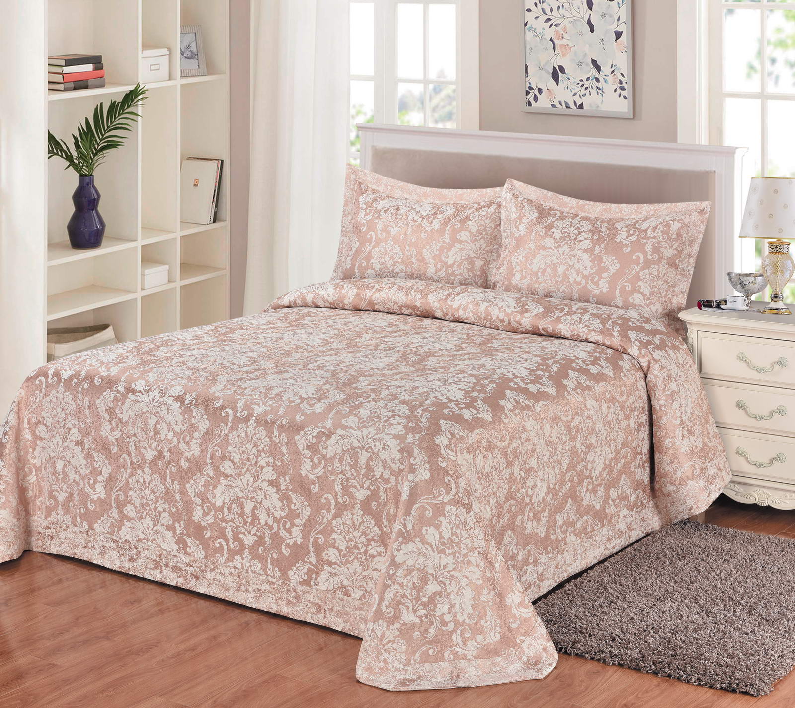 ПокрывалоТкань: ЖаккардрПокрывало 240х260Наволочка 50х70 (2)Состав: 100% полиэстерУход: бережная стирка, возможена хим. чистка, глажка разрешенаУпаковка: Подарочная упаковка из картона и ПВХ