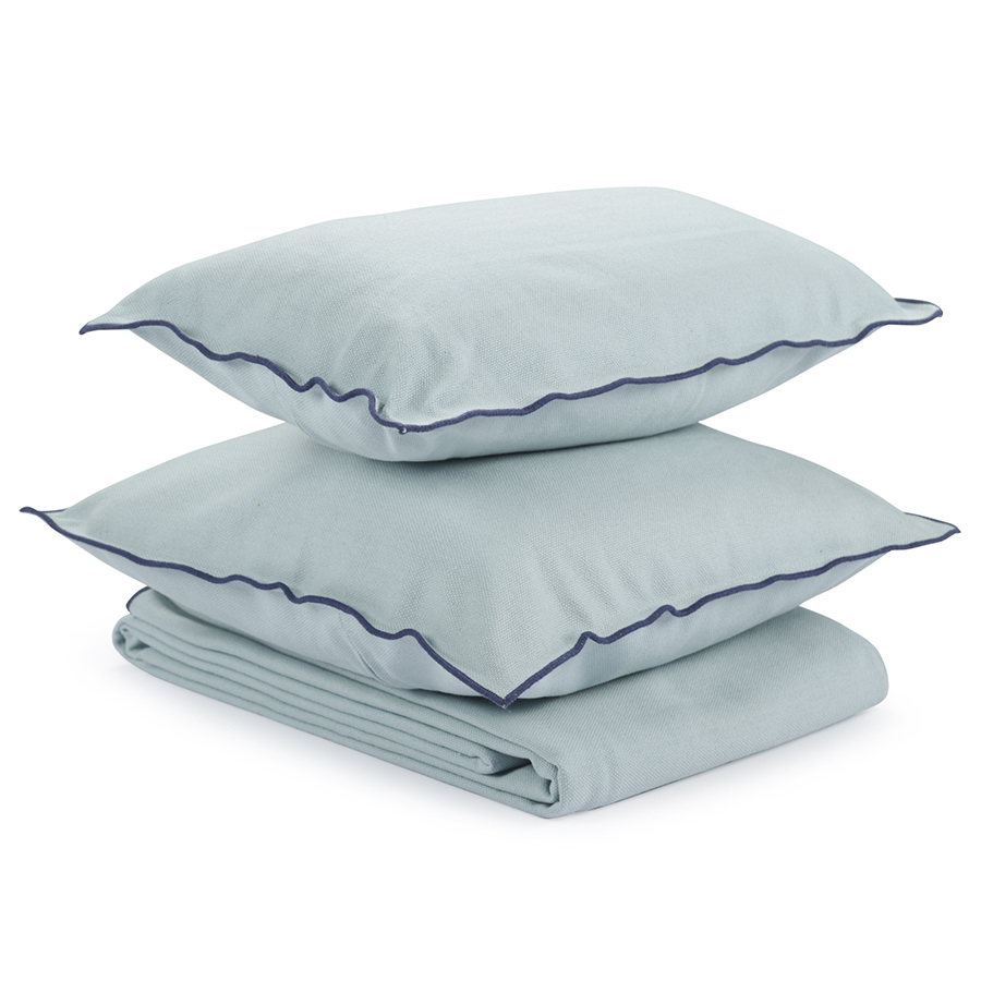 "Покрывало из фактурного хлопка голубого цвета с контрастным синим кантом из коллекции Essential подойдет для любого современного интерьера. Плотный фактурный хлопок не вызывает аллергии, хорошо пропускает воздух, не электризуется, и на нем не образуются катышки. В интерьере можно дополнить подушками в том же стиле. Покрывало представлено в двух размерах. Изделие упаковано в брендированную крафтовую коробку.