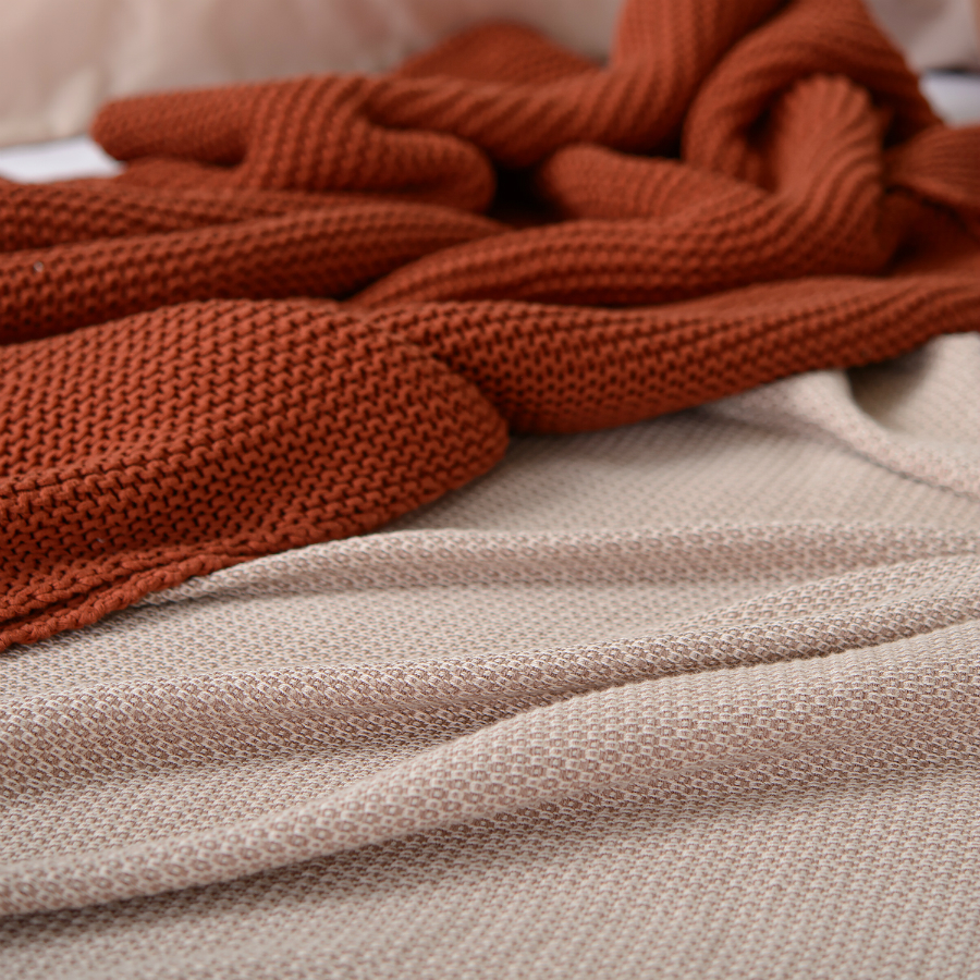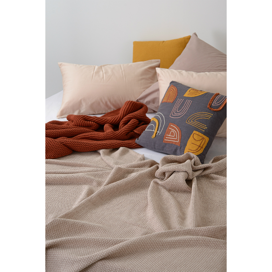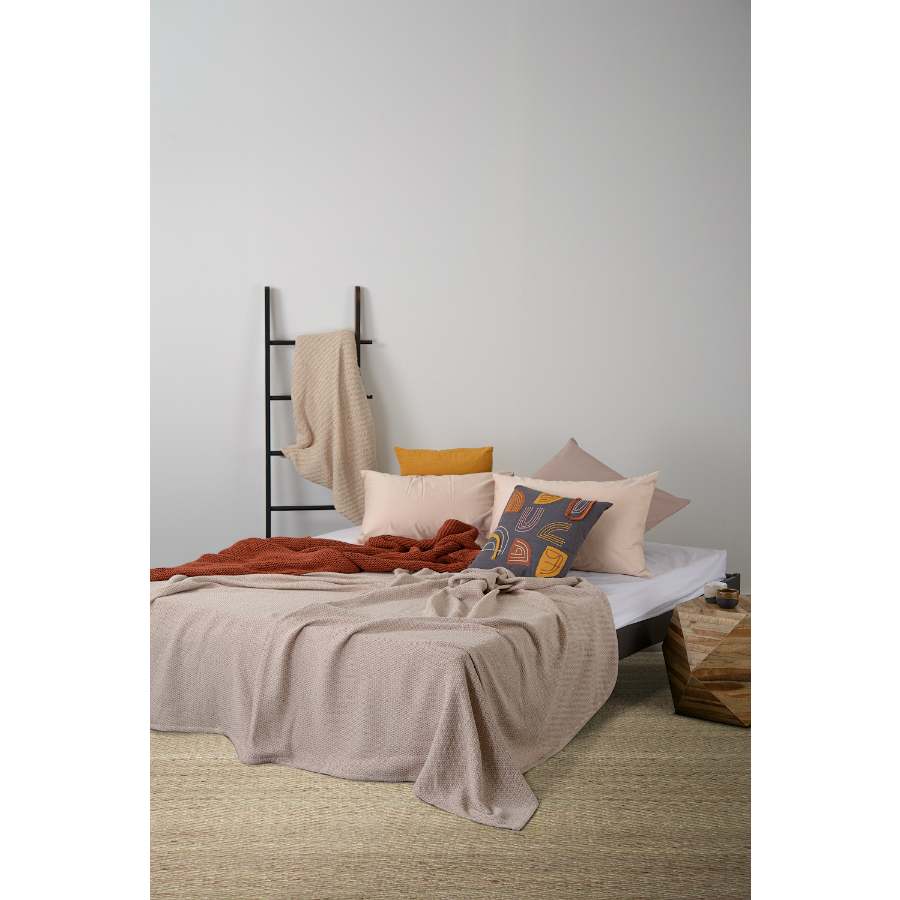 Покрывало из хлопка бежевого цвета с вафельным рисунком из коллекции Ethnic, 180х250 см