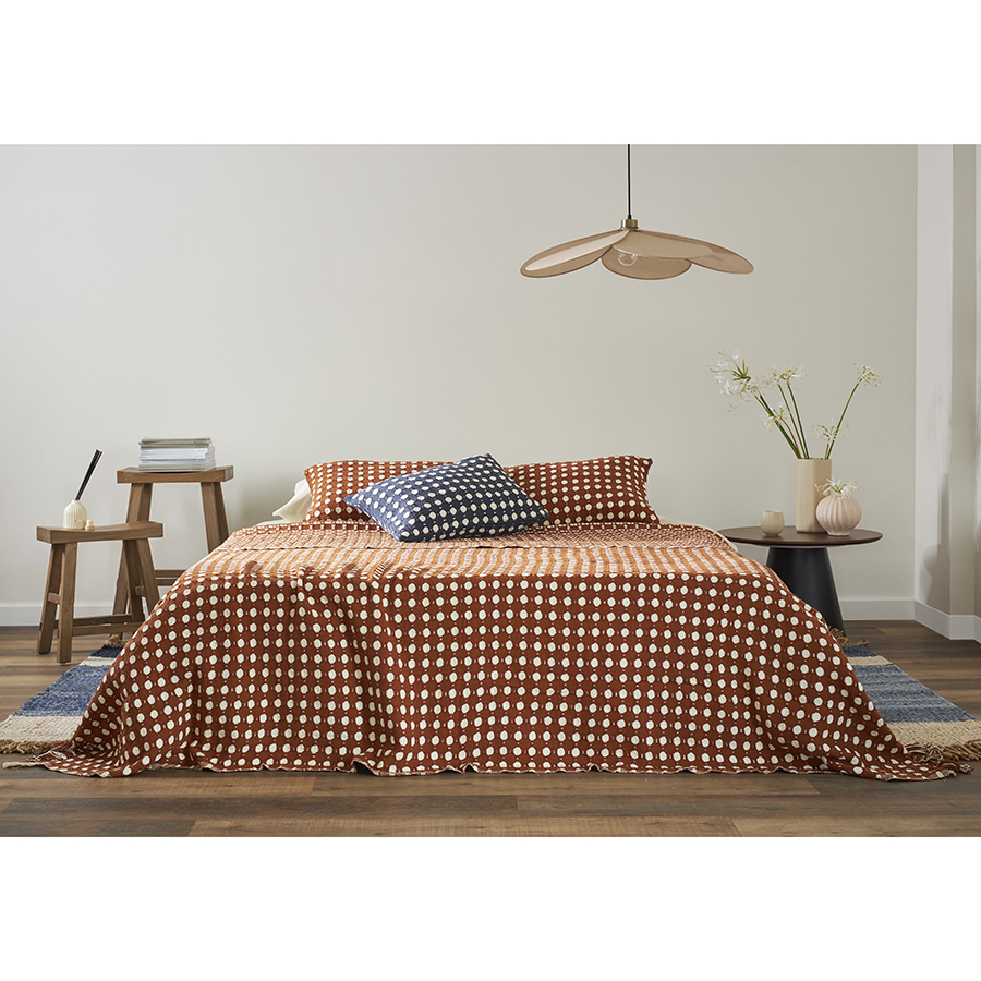 Покрывало из хлопка Polka dots карамельного цвета из коллекции Essential, 230х250 см, Tkano