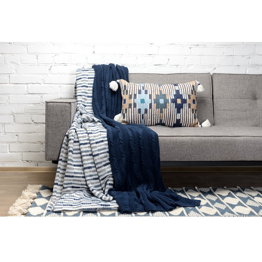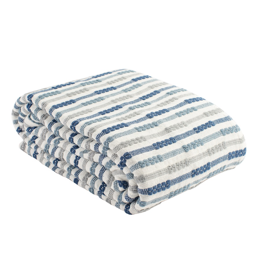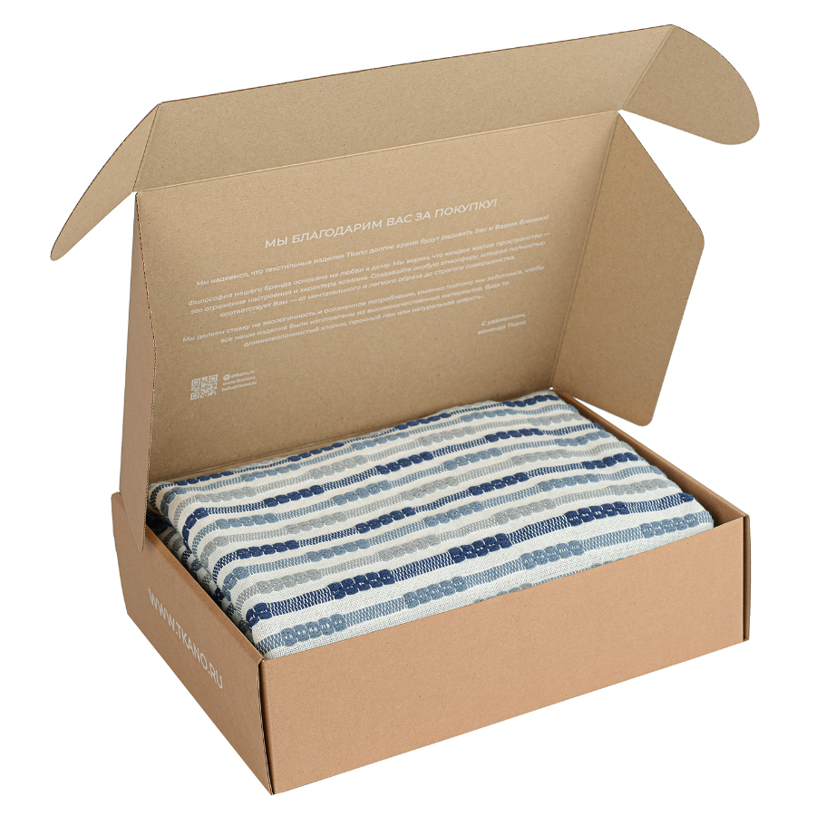 "Хлопковое покрывало в полоску с объемным тканым рисунком из коллекции Ethnic станет уникальным элементом декора в помещениях, оформленных в скандинавском или этно-стиле. Покрывало произведено из прочного, приятного на ощупь гипоаллергенного хлопка и упаковано в брендированную крафтовую коробку.