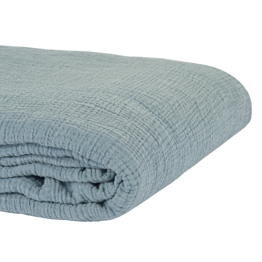 Покрывало из жатого хлопка джинсово-синего цвета из коллекции Essential, 180х240 см