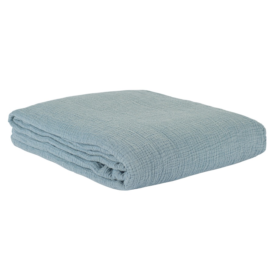 Покрывало из жатого хлопка джинсово-синего цвета из коллекции Essential, 230х250 см