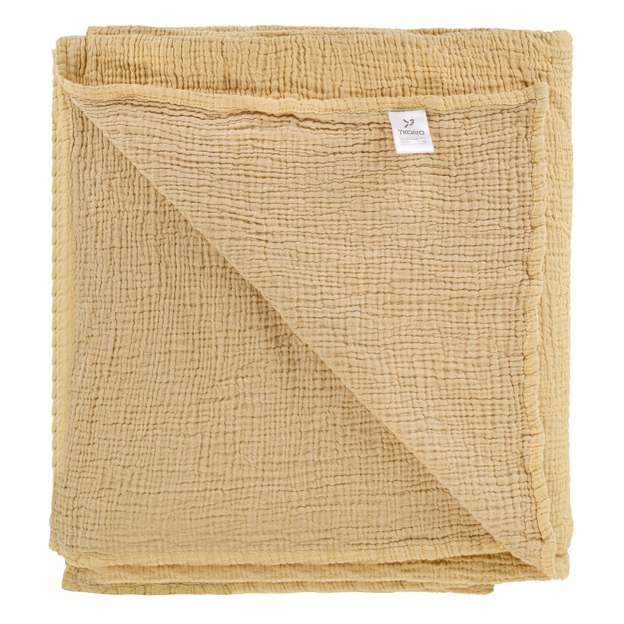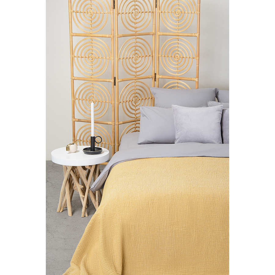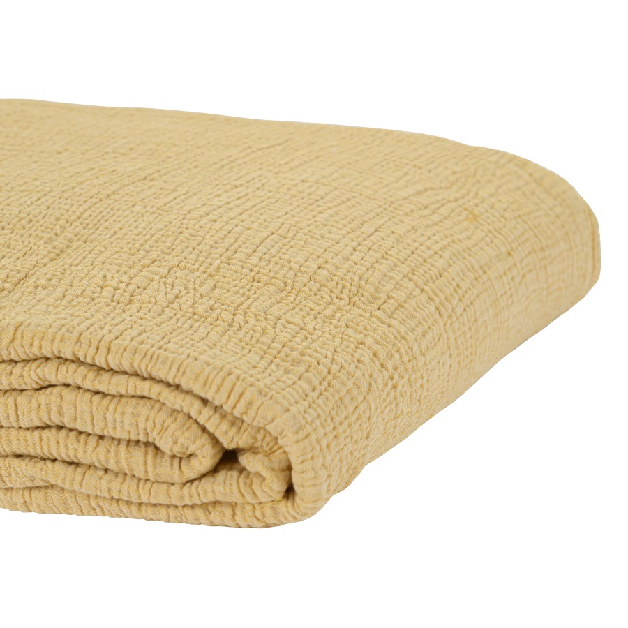 Покрывало из жатого хлопка горчичного цвета из коллекции Essential, 230х250 см