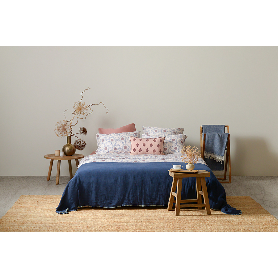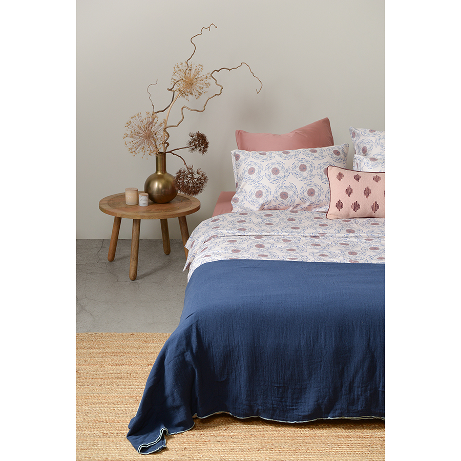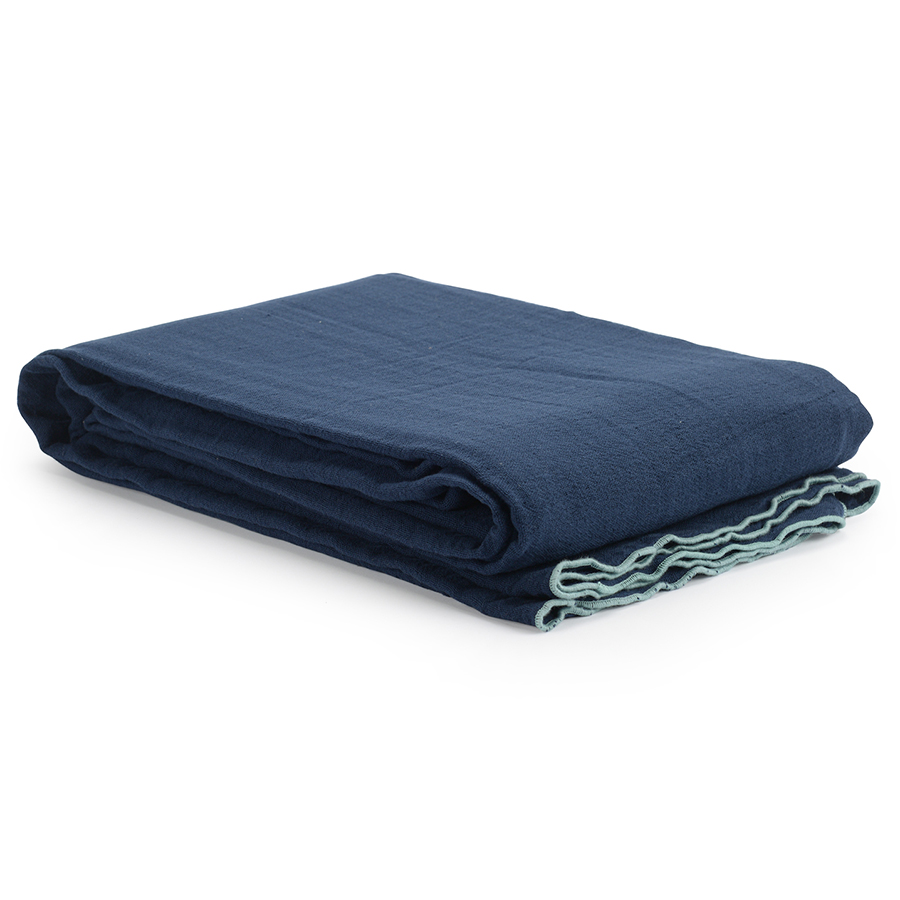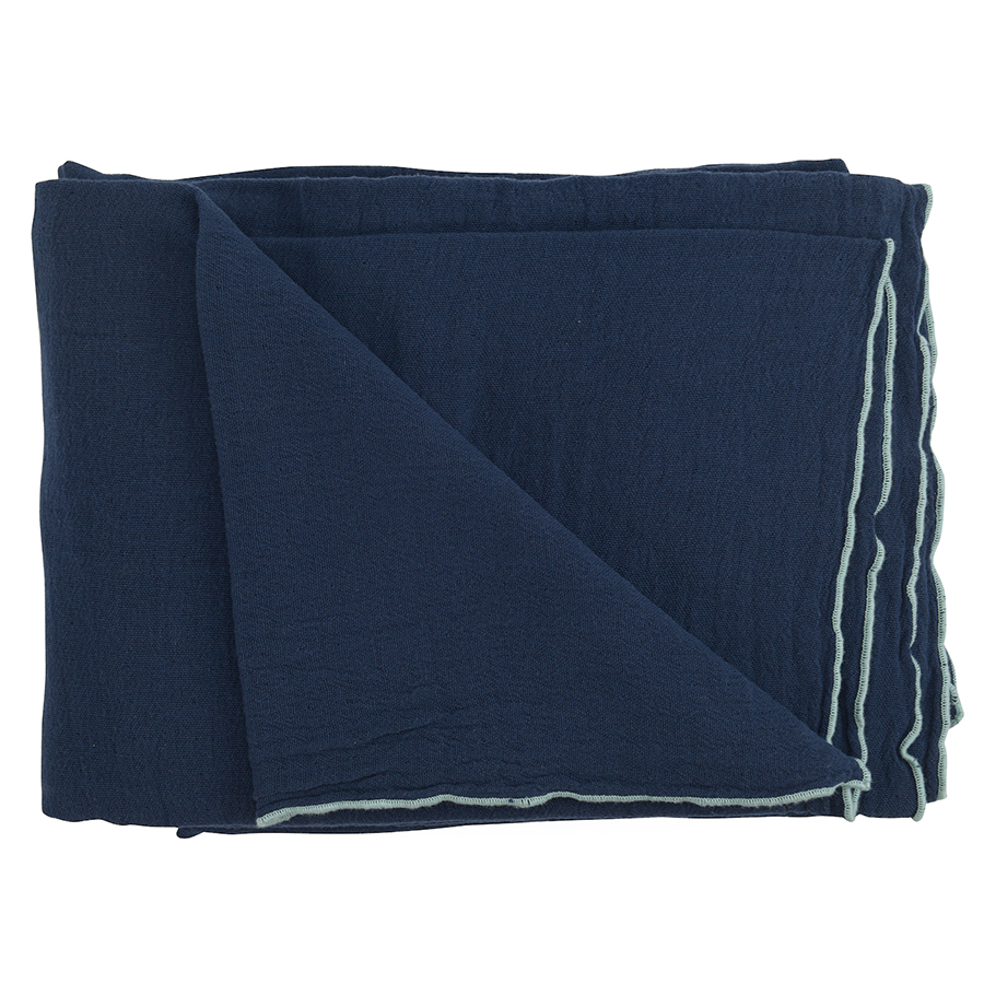 Покрывало легкое из хлопка темно-синего цвета с контрастной каймой из коллекции Essential, 180х250 см