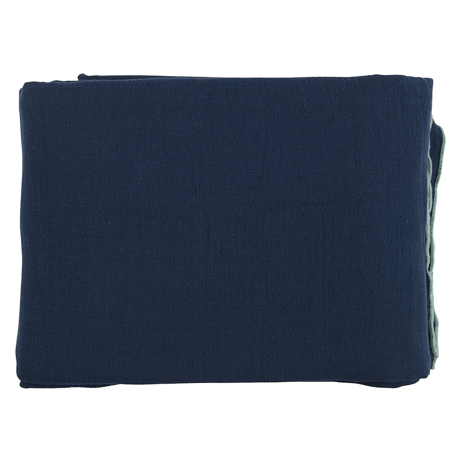 Покрывало легкое из хлопка темно-синего цвета с контрастной каймой из коллекции Essential, 230х250 см