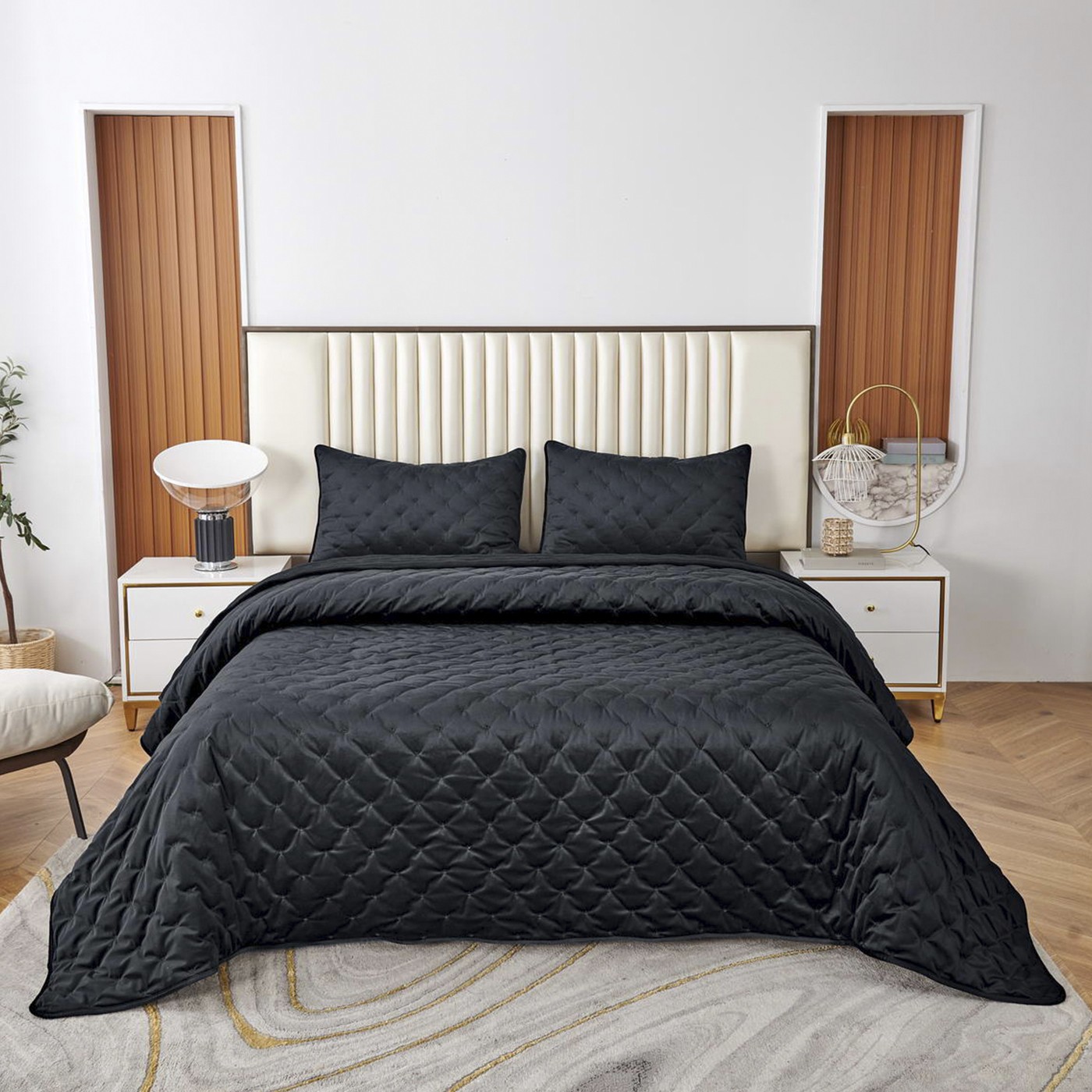 Покрывало с наволочками велюровое ЛеяКомплектация: Покрывало: 240х260см (1шт);Наволочки: 50х70см (2шт);Тип ткани: велюр;Состав ткани: 100% вискоза;Наполнитель: микроволокно 150гр/м2Плотность покрывала 430гр/м2;Пошив покрывала и наволочек с кантом, наволочки на запахе. Вышивка "короны" на всем изделии; Упаковка: Текстильная сумка;Уход: Щадящая стирка 30 градусов.