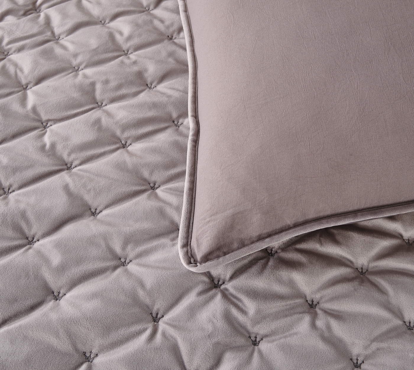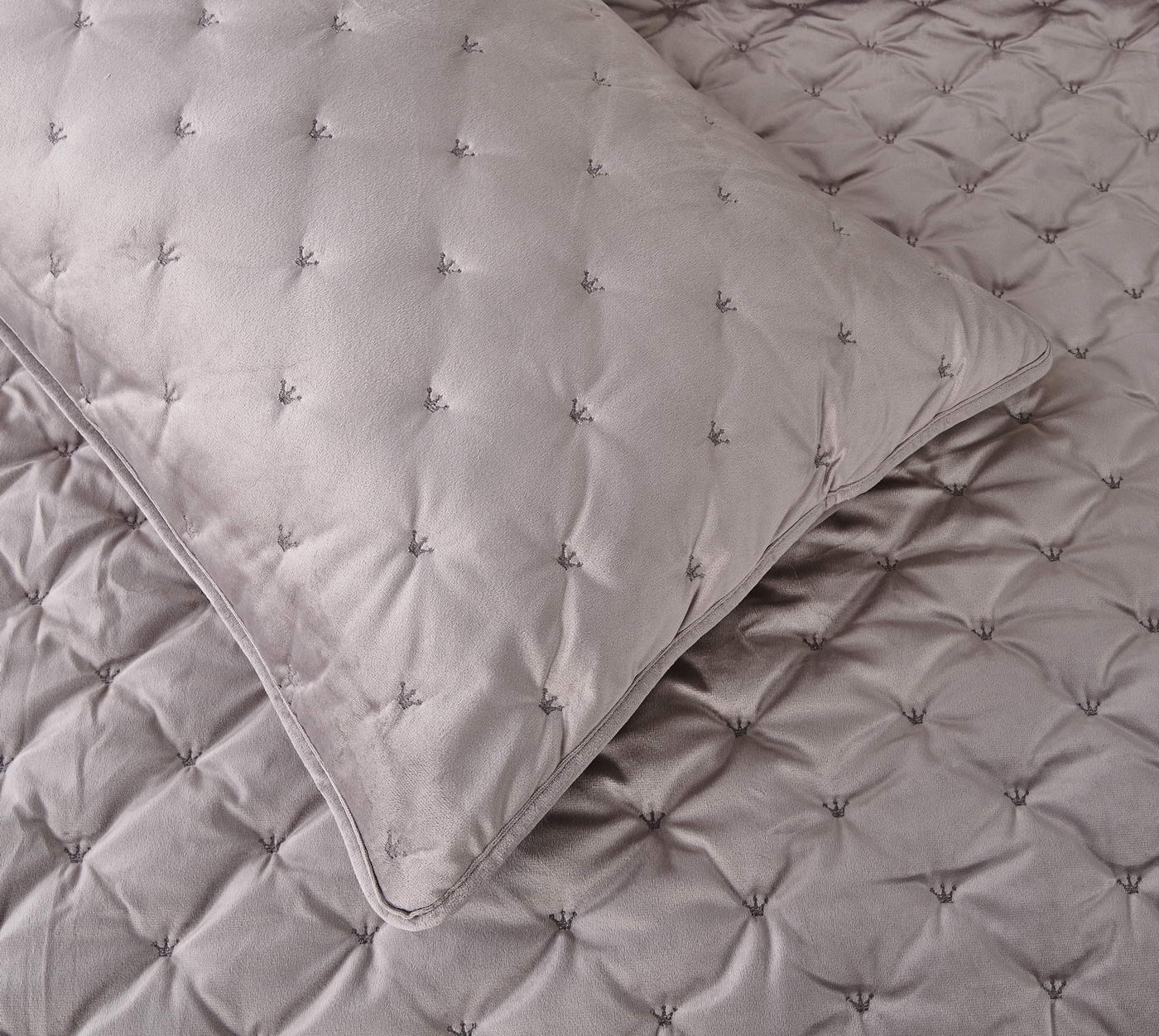 Покрывало с наволочками велюровое ЛеяКомплектация: Покрывало: 240х260см (1шт);Наволочки: 50х70см (2шт);Тип ткани: велюр;Состав ткани: 100% вискоза;Наполнитель: микроволокно 150гр/м2Плотность покрывала 430гр/м2;Пошив покрывала и наволочек с кантом, наволочки на запахе. Вышивка "короны" на всем изделии; Упаковка: Текстильная сумка;Уход: Щадящая стирка 30 градусов.