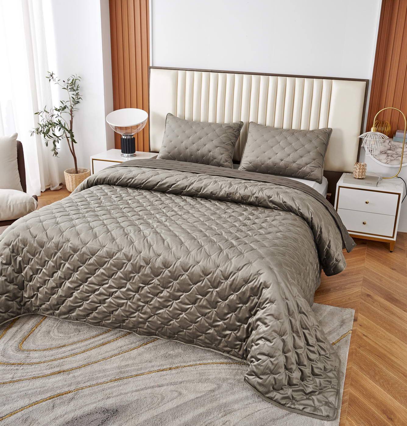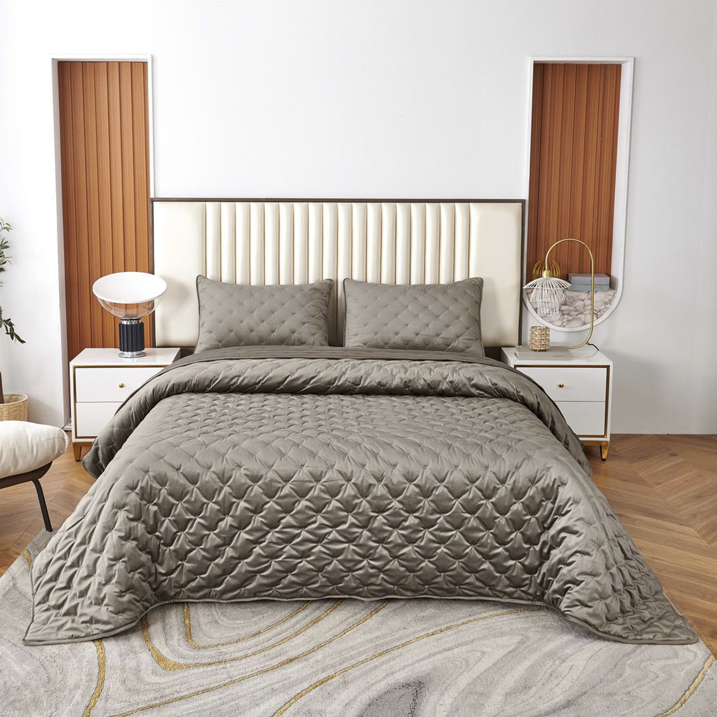Покрывало с наволочками велюровое ЛеяКомплектация: Покрывало: 240х260см (1шт);Наволочки: 50х70см (2шт);Тип ткани: велюр;Состав ткани: 100% вискоза;Наполнитель: микроволокно 150гр/м2Плотность покрывала 430гр/м2;Пошив покрывала и наволочек с кантом, наволочки на запахе. Вышивка "короны" на всем изделии; Упаковка: Текстильная сумка;Уход: Щадящая стирка 30 градусов.