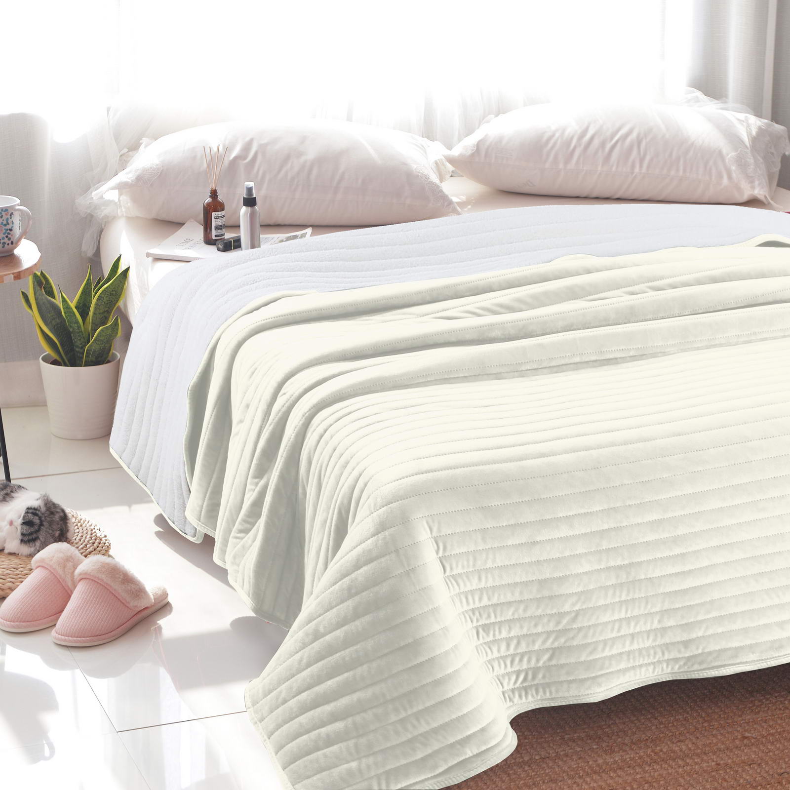 Плед-покрывало двустороннее: велюр+имитация мехаСостав: 70% вискоза, 30% хлопокУход 30СУпаковка: сумка ПВХ