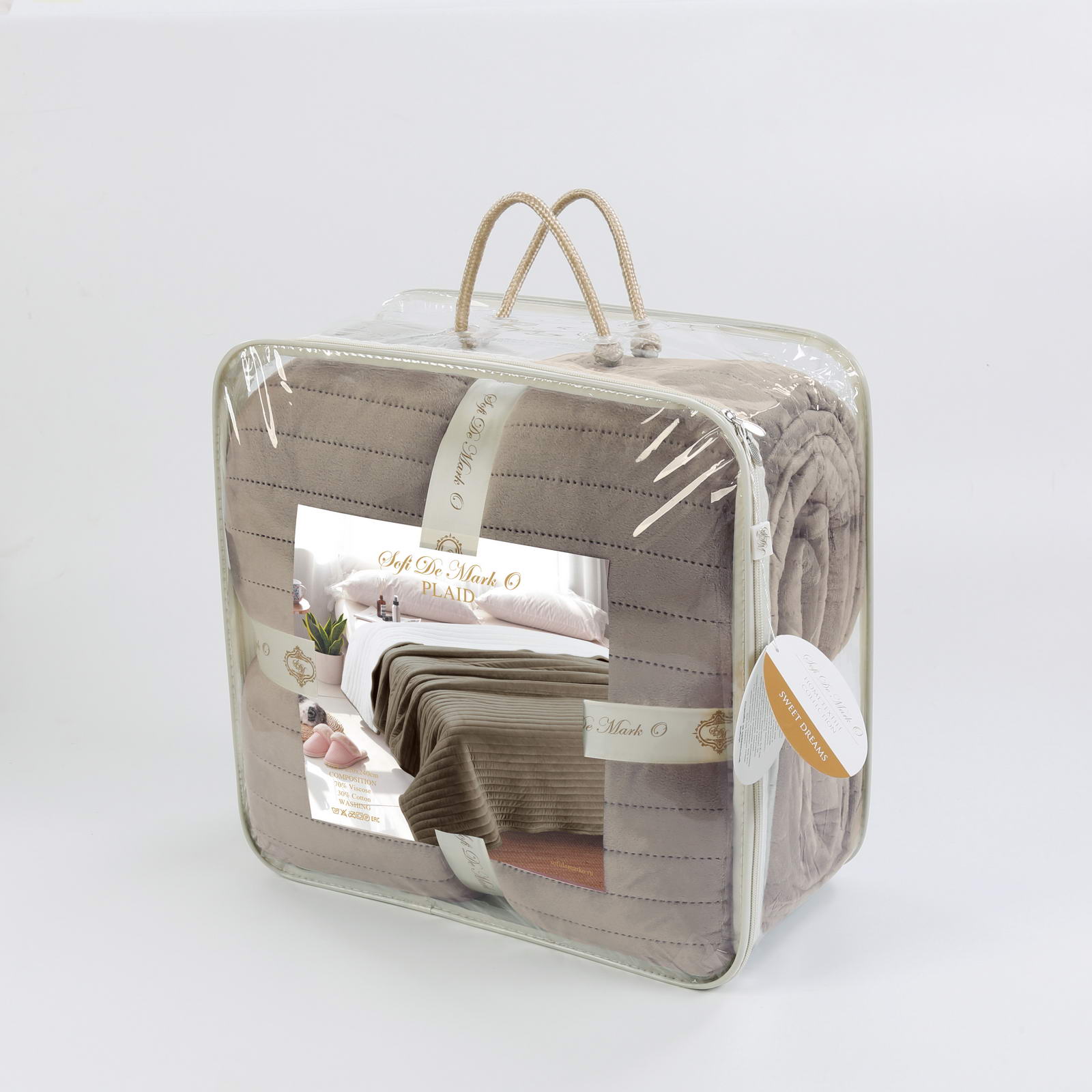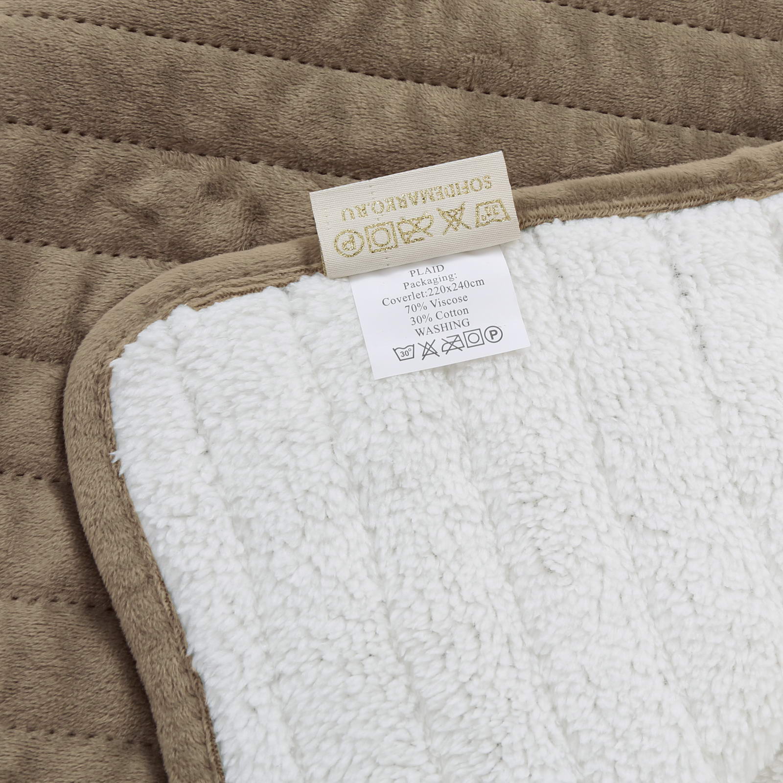 Плед-покрывало двустороннее: велюр+имитация мехаСостав: 70% вискоза, 30% хлопокУход 30СУпаковка: сумка ПВХ