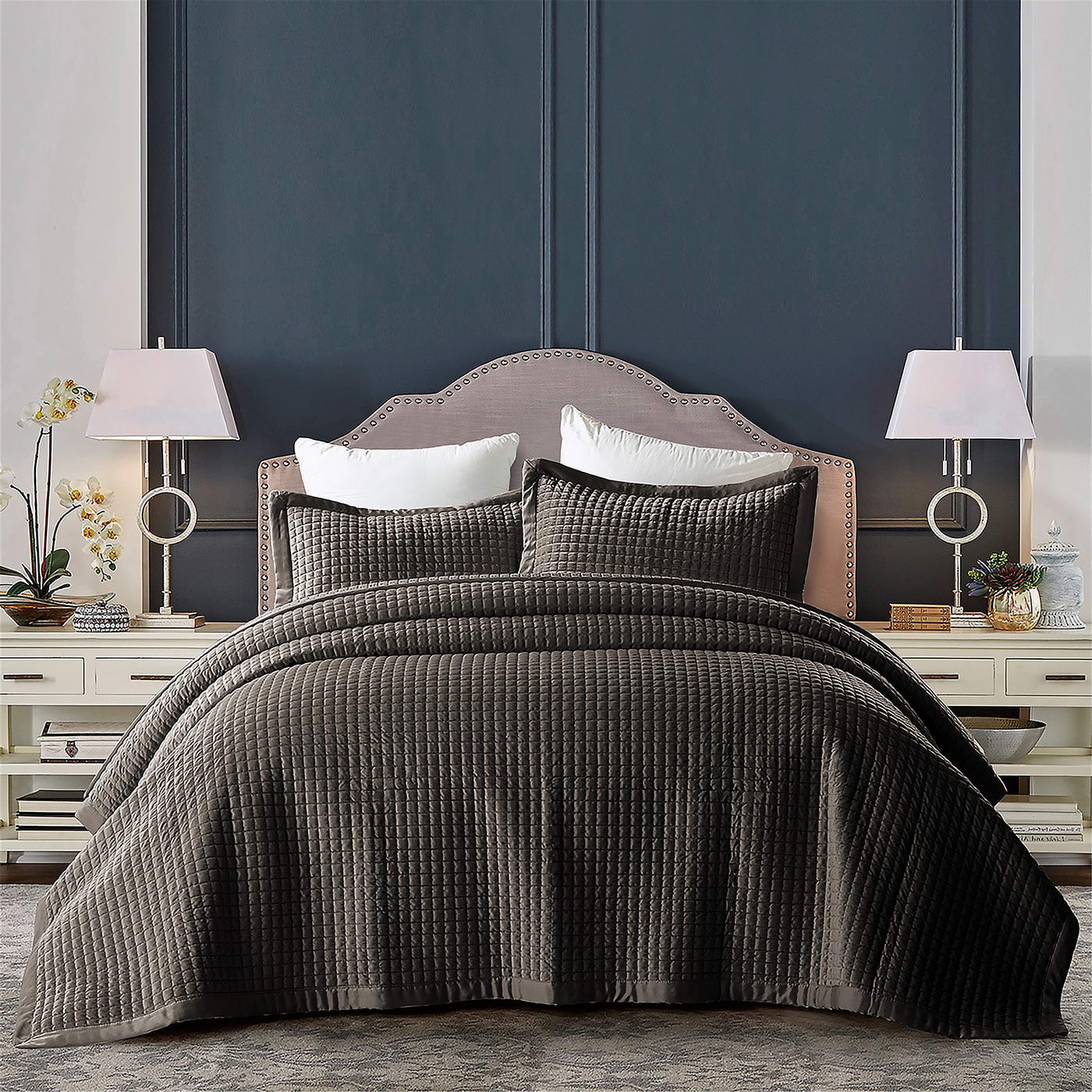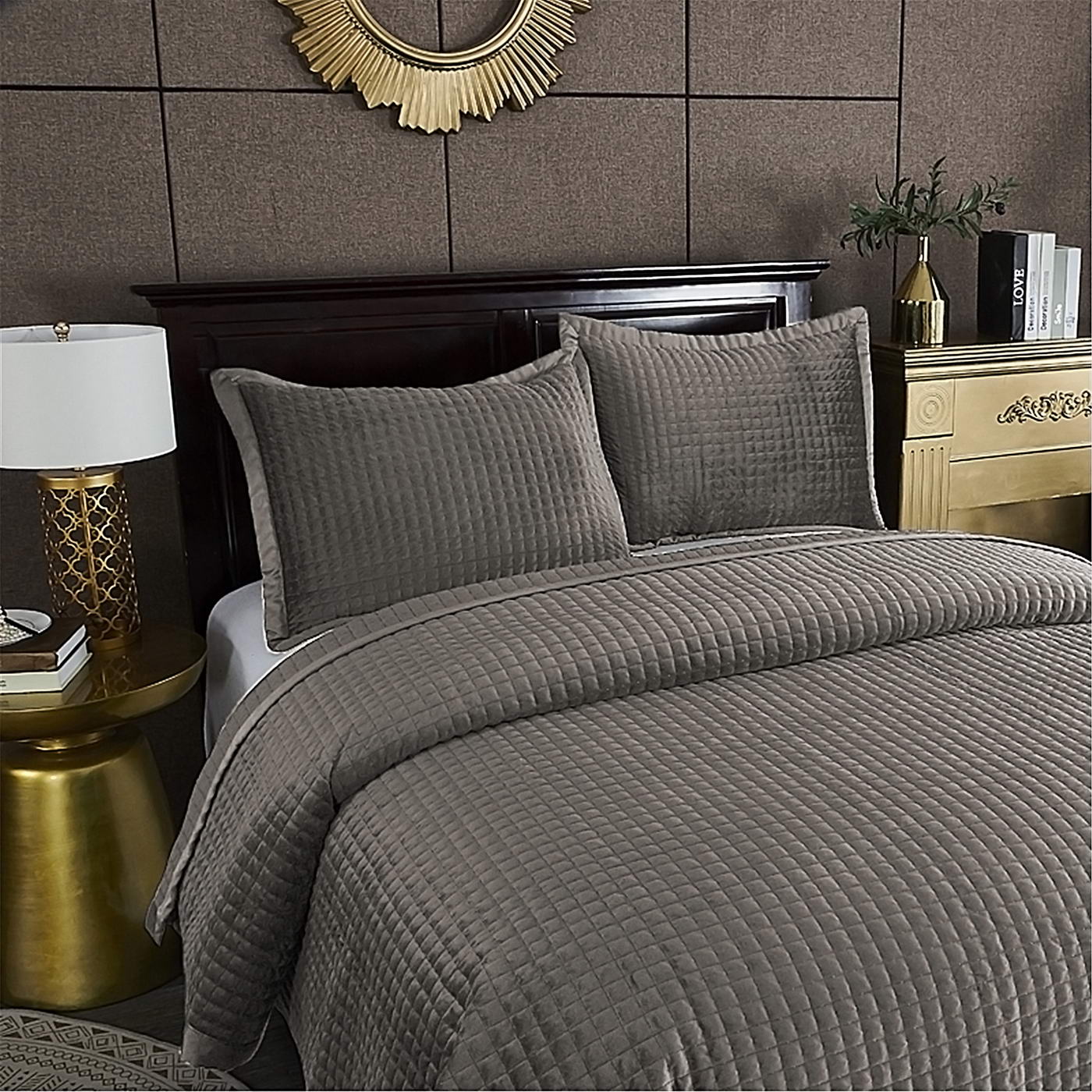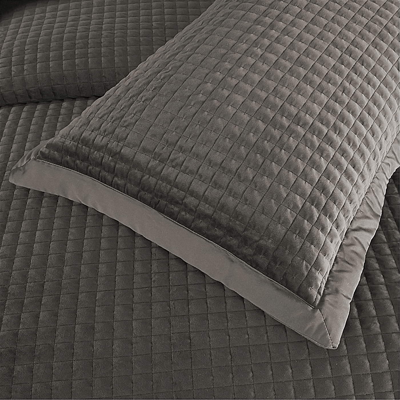 Покрывало декоративное велюровое, декорированное атласным бортом 5смКомплектация: покрывало 240х260см (1шт);наволочки 50х70+5см (2шт);Состав: 100% вискоза;Плотность: 200/170/80гр/м2;Стежка: клетка;Упаковка: текстильная сумка;Уход: Стирка 30°C