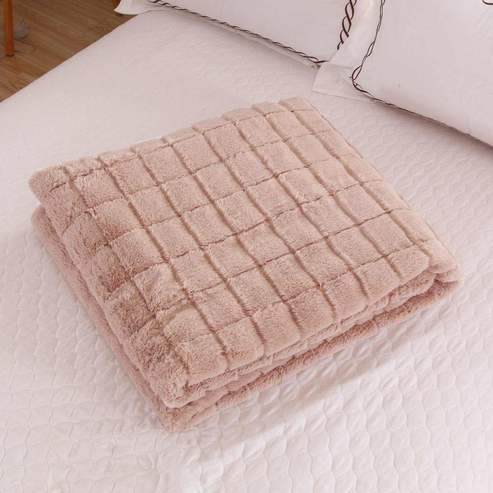 ПледРазмер: 160х220Состав: 100% вискозаОсобенности: на лицевой стороне рельефный рисунокПлотность: 600 гр.кв.мУпаковка: текстильная сумкаУход: стирка 30гр.