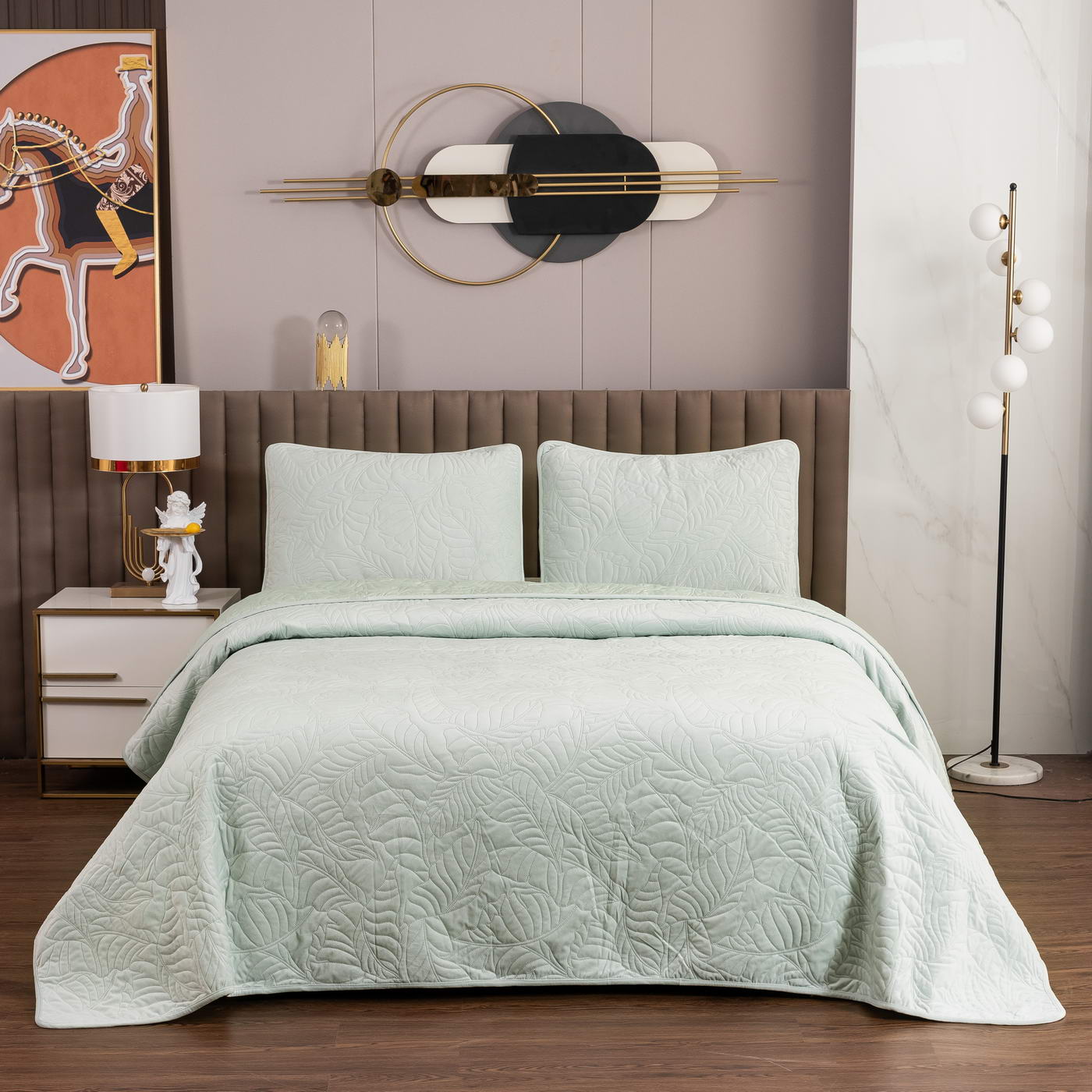 Покрывало стеганоеКомплектация:Покрывало: 160х220 (1шт);Наволочка: 50х70 (1шт);Плотность: 400 гр/м2 (200/120/80);Состав ткани: 100% вискоза;Наполнитель: микроволокно;Упаковка: текстильная сумка;Уход: Стирка 30°C