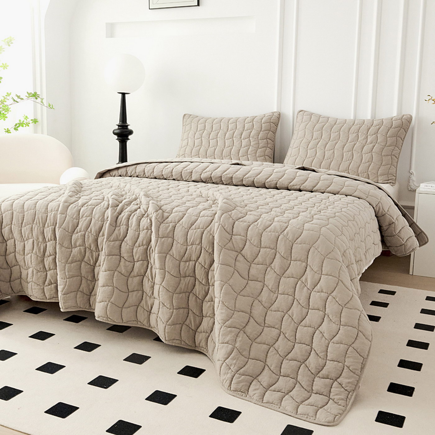 Покрывало с эффектом жаткиКомплектация:Покрывало: 230х250см (1шт)Наволочка: 50х70см (2шт)Состав ткани: 70% хлопок, 30% вискоза;Наполнитель: микроволокно;Плотность наполнителя: 100гр/м;Уход: стирка 30';Упаковка: сумка ПВХ.