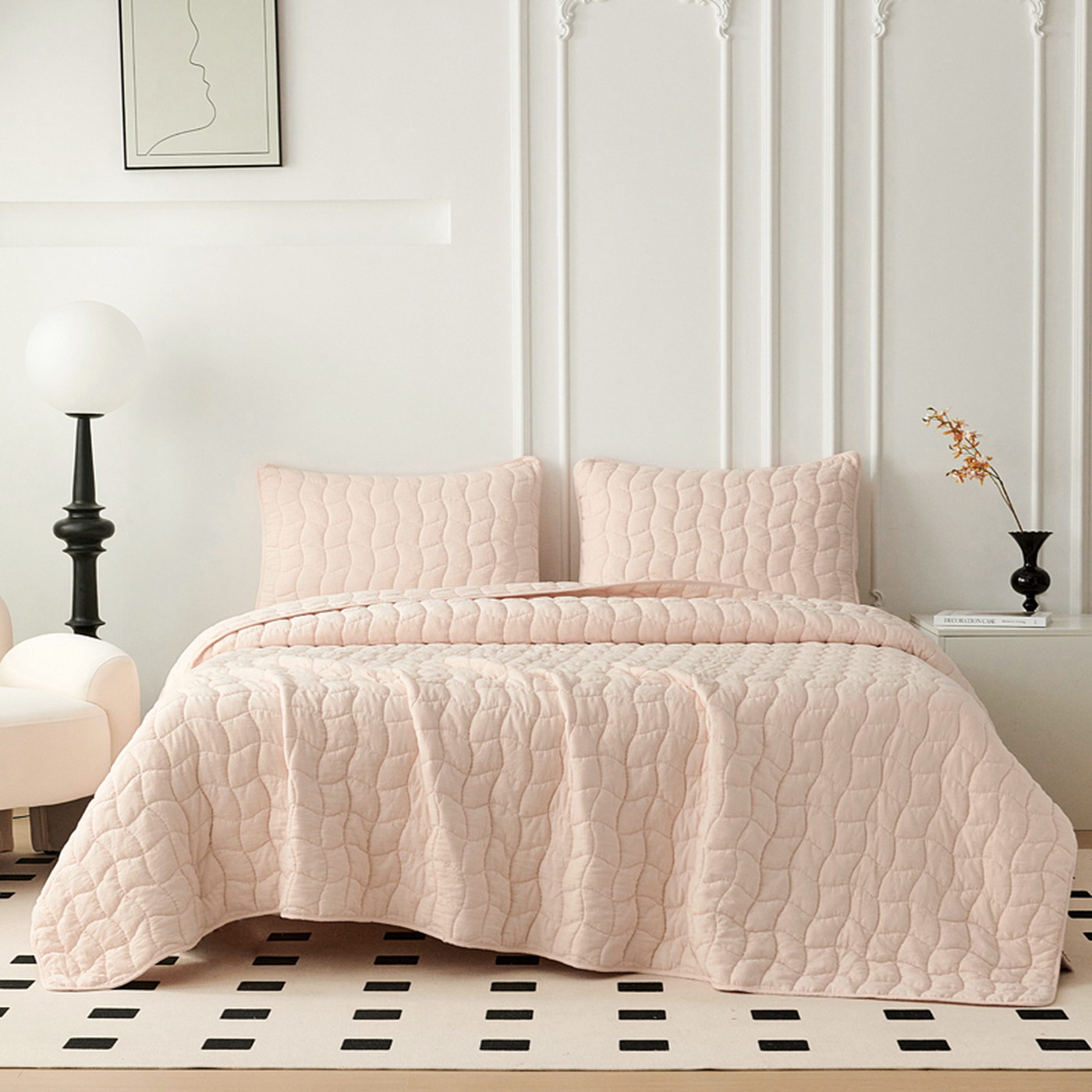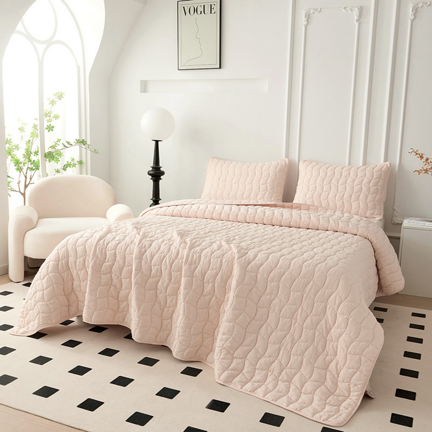 Покрывало с эффектом жаткиКомплектация:Покрывало: 230х250см (1шт)Наволочка: 50х70см (2шт)Состав ткани: 70% хлопок, 30% вискоза;Наполнитель: микроволокно;Плотность наполнителя: 100гр/м;Уход: стирка 30';Упаковка: сумка ПВХ.