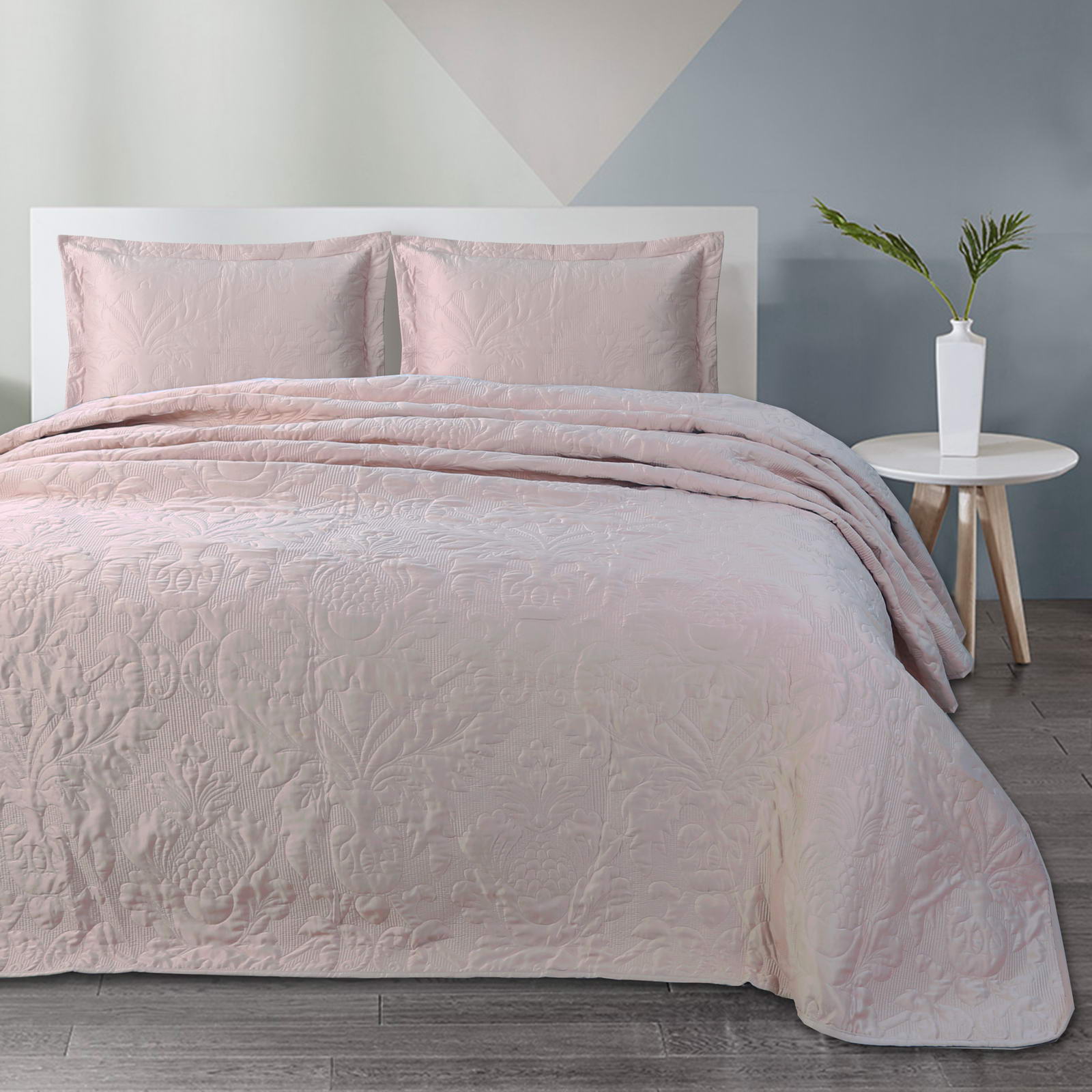 Покрывала СтеганноеКомплектация:Покрывало: 240х260Наволочки: 50х70 (2шт)Особенность: рельефная стежкаСостав: 70% Вискоза; 30% Хлопка.Упаковка: текстильная сумкаУход. Стирка 30'