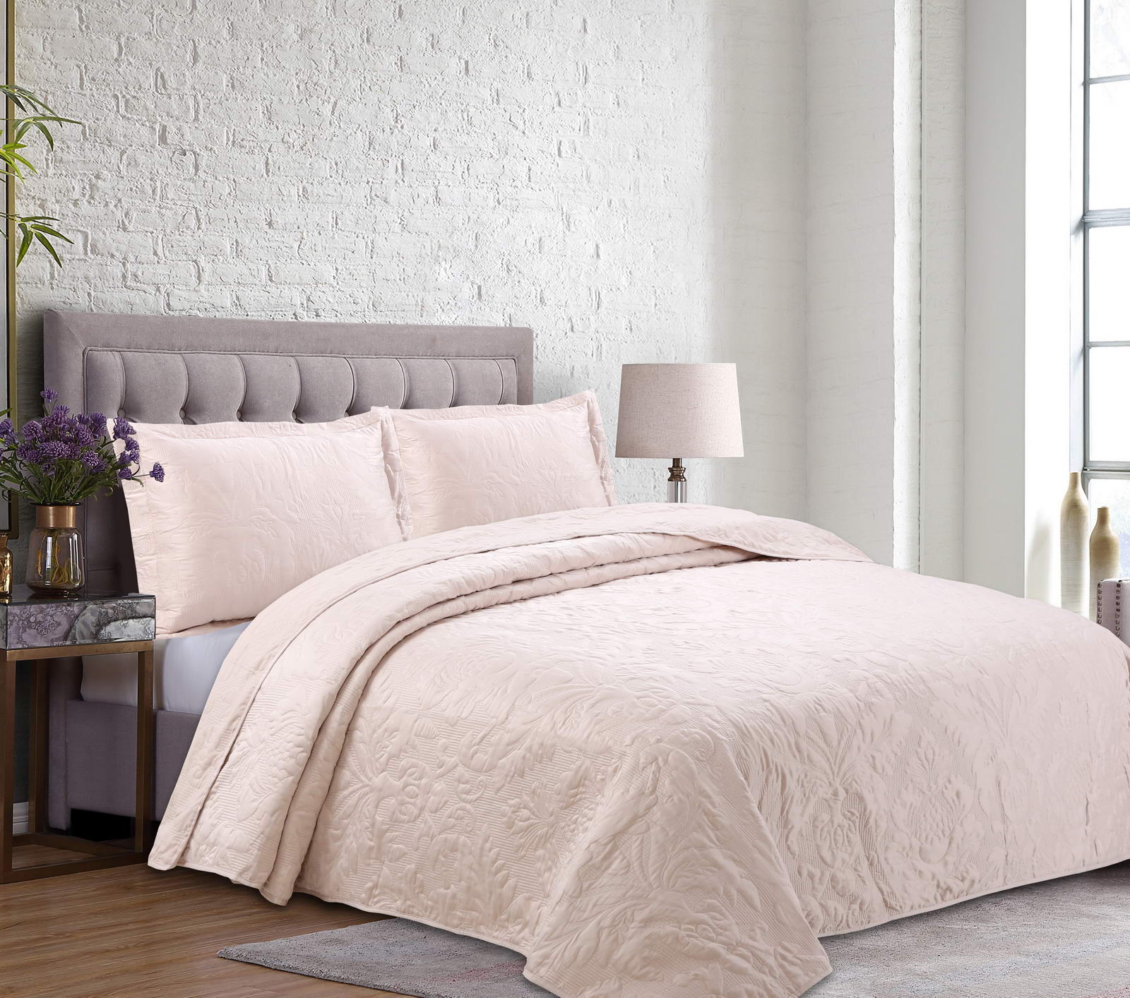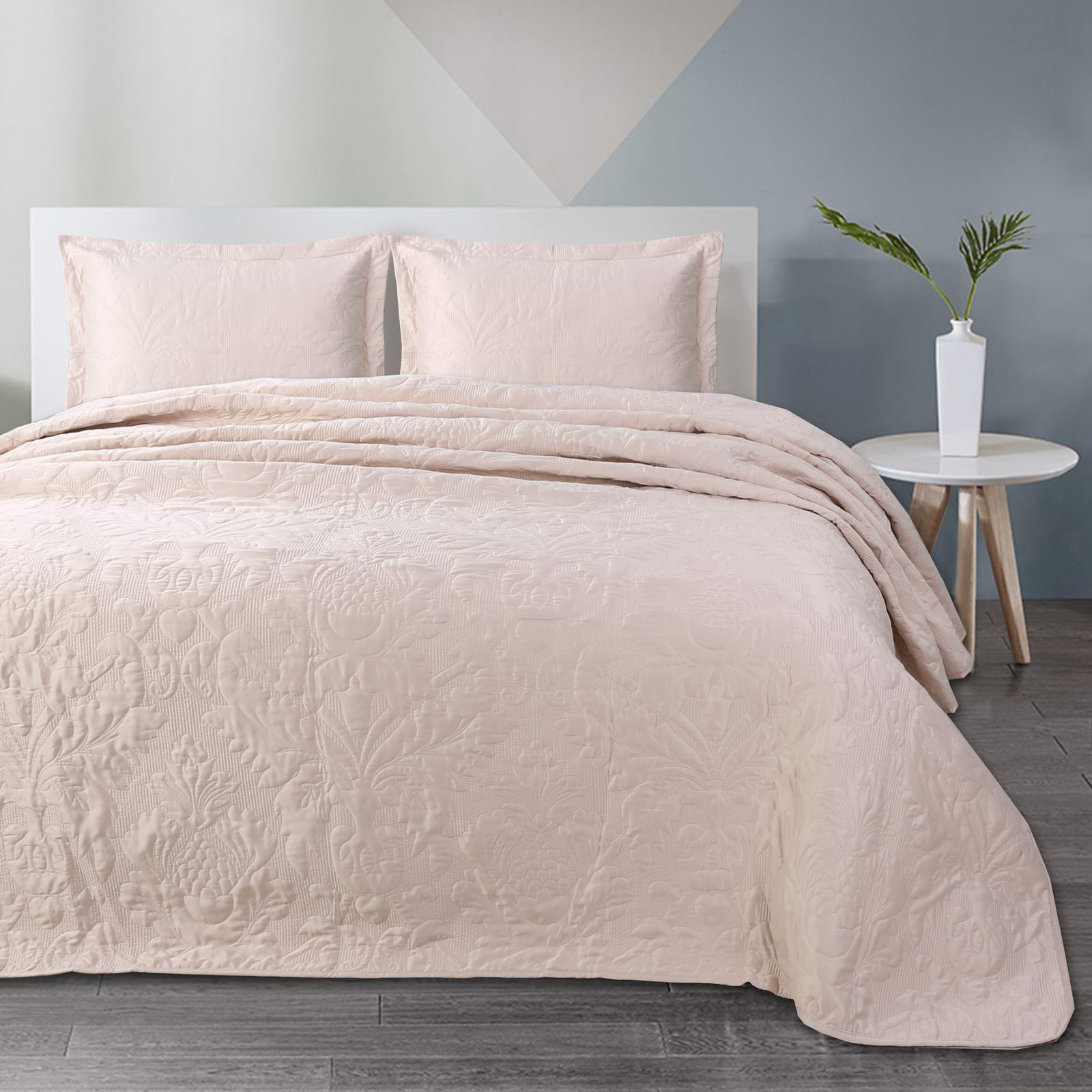 Покрывала СтеганноеКомплектация:Покрывало: 240х260Наволочки: 50х70 (2шт)Особенность: рельефная стежкаСостав: 70% Вискоза; 30% Хлопка.Упаковка: текстильная сумкаУход. Стирка 30'