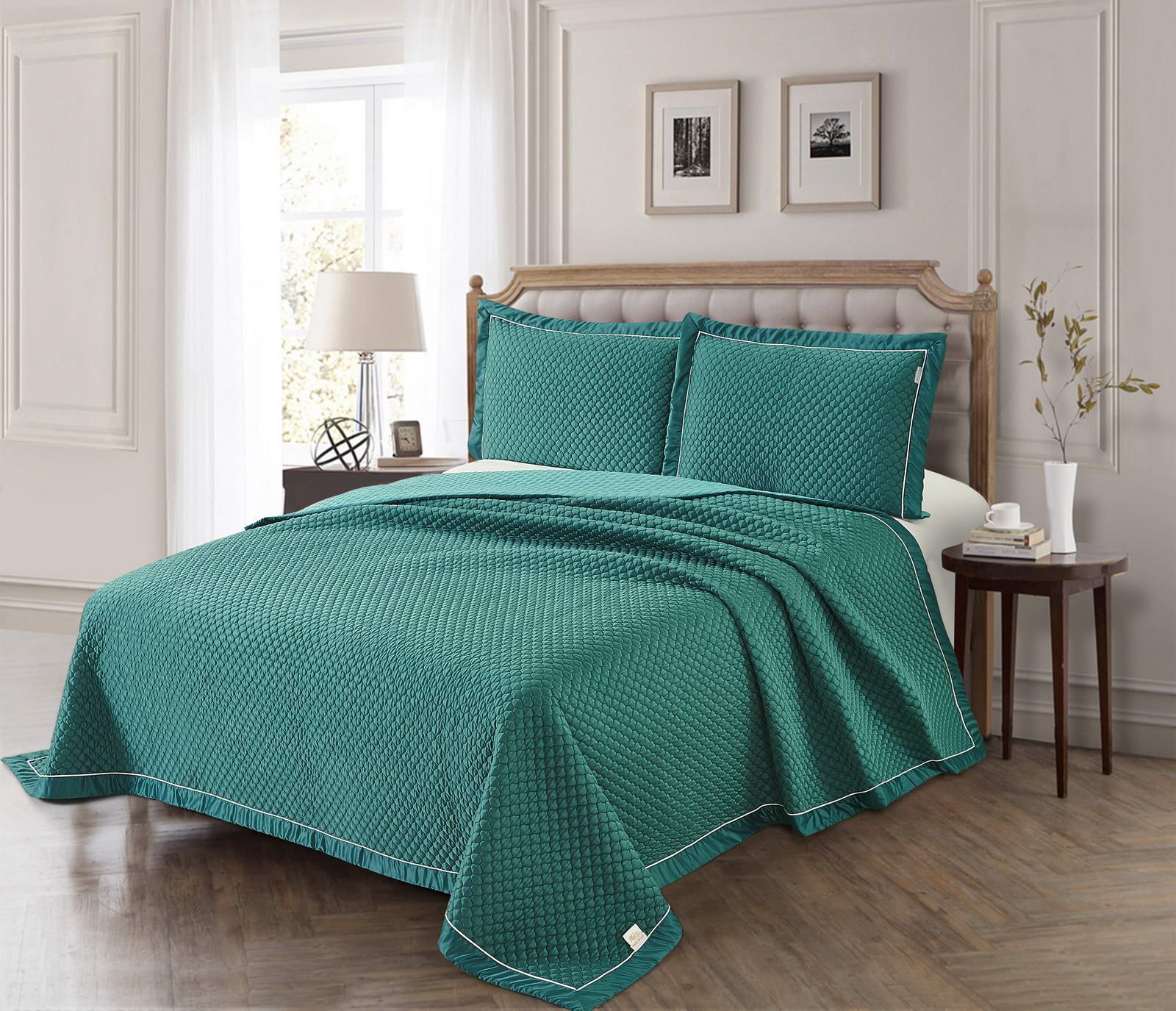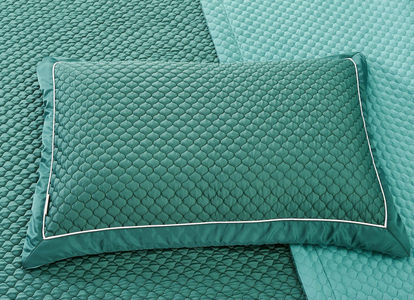 Покрывало стеганноеТкань: атласСостав: 30% хлопок, 70% вискоза; Комплектация:Покрывало: 230х250 (1);Наволочки: 50х70 (2); Упаковка: текстильная сумкаУход : Стирка 30с°, щадящая сушка.