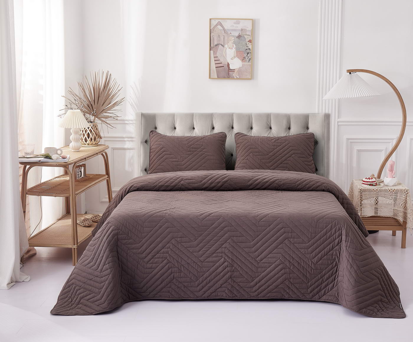 Покрывало с наволочками Мориц.Комплектация: Покрывало: 230х250см (1);Наволочки: 50х70см (2);Состав: 100% полиэстер;Плотность: 90 гр/ 180 гр/ 90гр;Упаковка: ПВХ;Уход: Щадящая стирка 30 градусов.