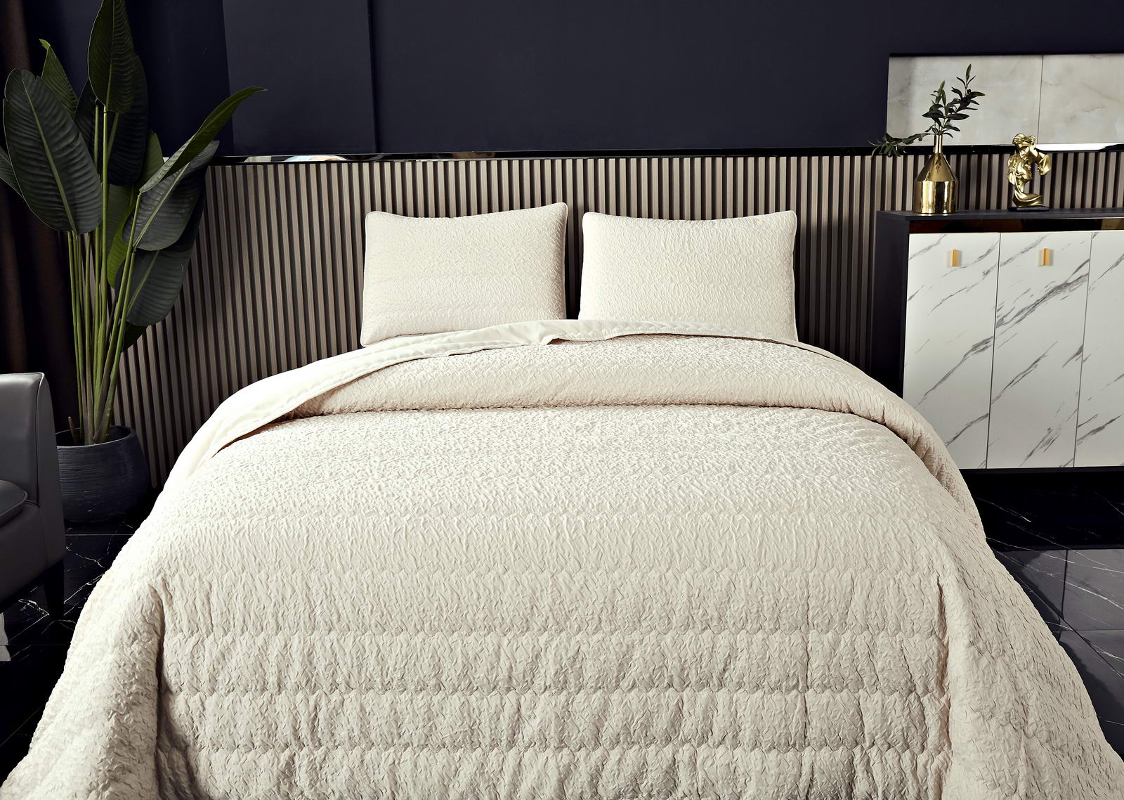 Покрывало Состав: 70% вискоза 30% хлопок ; Комплектация:Покрывало: 160х220 (1);Наволочки: 50х70 (1); Уход : Стирка 30-40с°;Упаковка: ПВСПлотность : 90/120/90