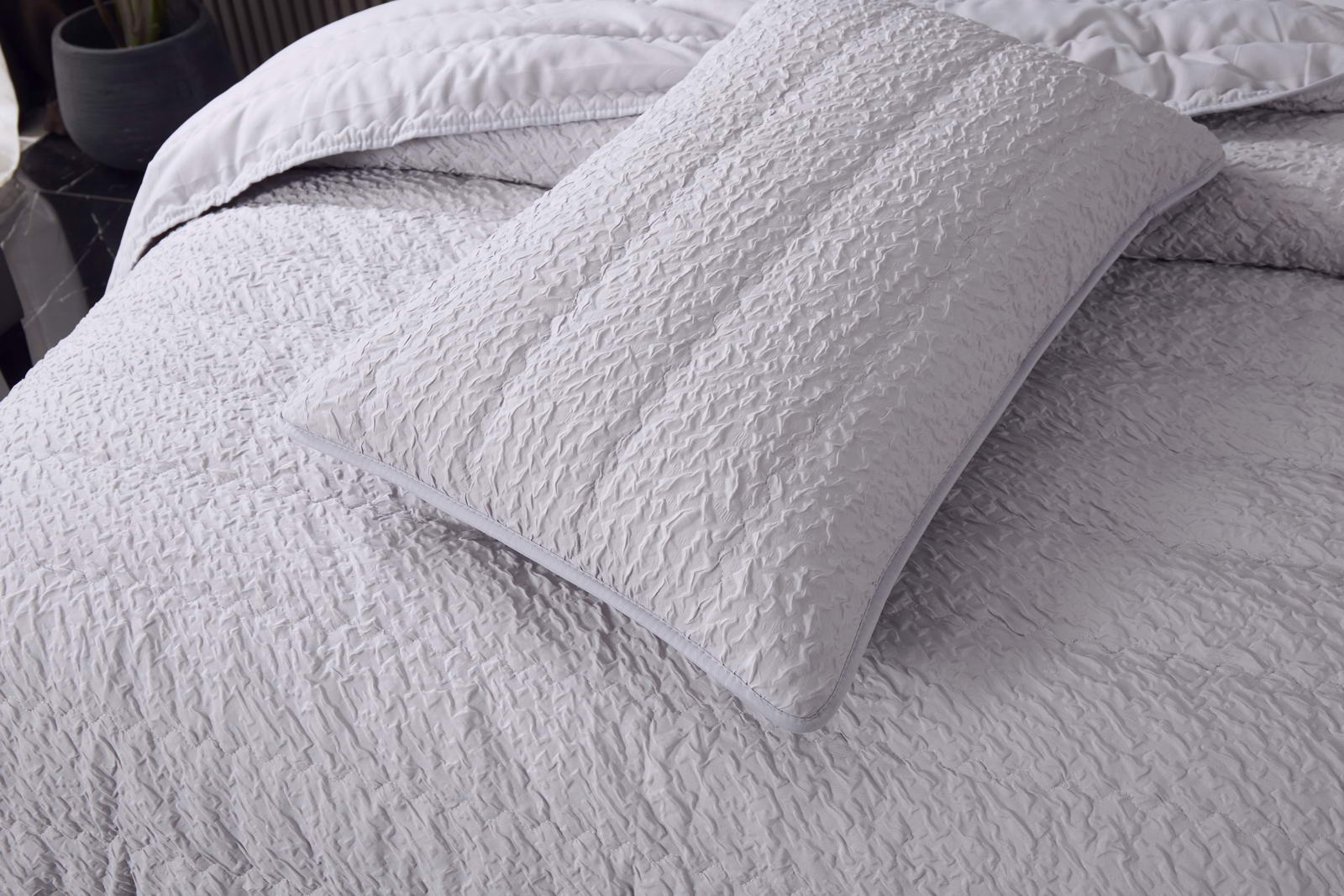 Покрывало Состав: 70% вискоза 30% хлопок ; Комплектация:Покрывало: 230х250 (1);Наволочки: 50х70 (2); Уход : Стирка 30-40с°;Упаковка: ПВСПлотность : 90/120/90