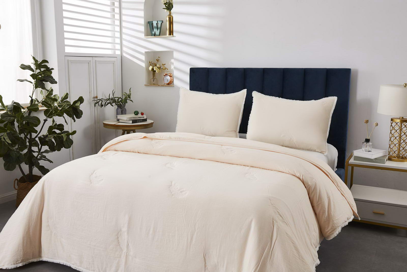 Покрывала-ОдеялоКомплектация:Покрывало: 230х250Наволочки: 50х70 (2шт)Наполнитель: микроволокно 130 гр Состав: 30% Вискоза; 70% Хлопка.Упаковка: сумка ПВХУход. Стирка 30'