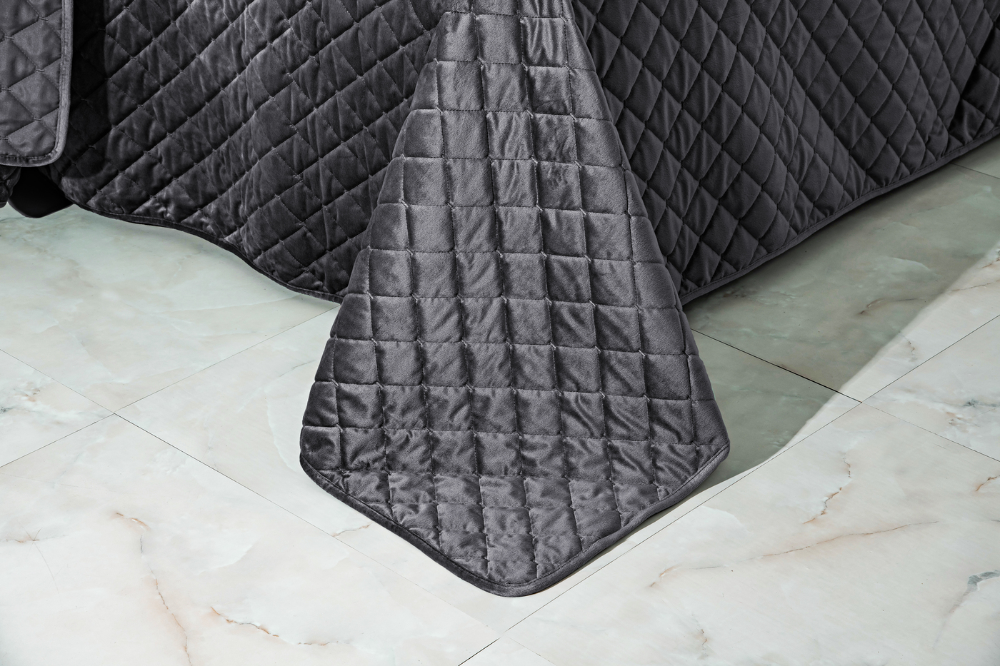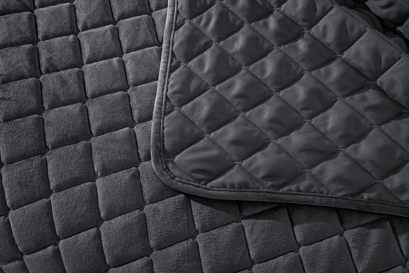Покрывало стеганное, стежка - ромбТкань: велюр; Состав: 100% вискоза; Комплектация:Покрывало: 240х260см (1);Наволочки: 50х70см (2); Плотность: 200/160/70Уход : Стирка 30-40с°;Упаковка: Текстильная сумка.