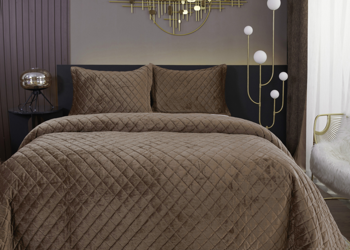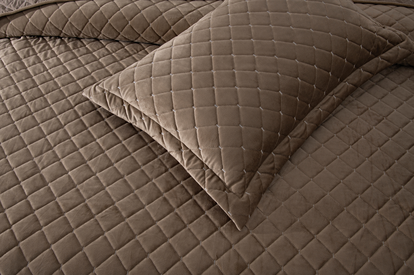 Покрывало стеганное, стежка - ромбТкань: велюр; Состав: 100% вискоза; Комплектация:Покрывало 160х220см (1шт)Наволочка 50х70см (1 шт)Плотность: 200/160/70Уход : Стирка 30-40с°;Упаковка: Текстильная сумка.