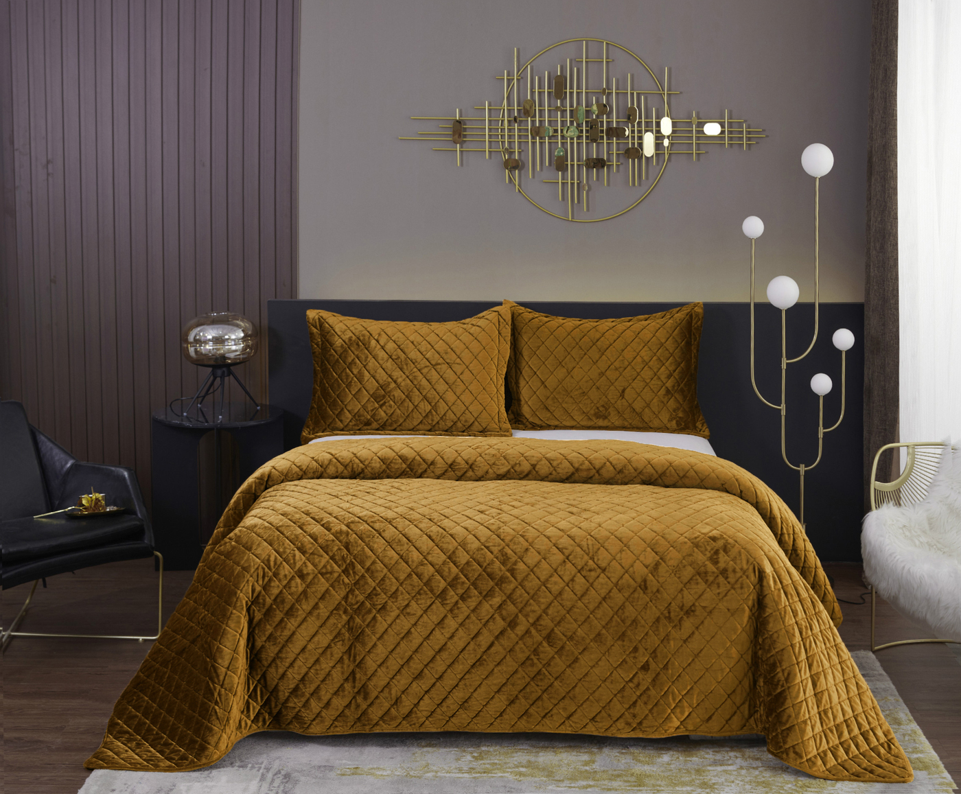 Покрывало стеганное, стежка - ромбТкань: велюр; Состав: 100% вискоза; Комплектация:Покрывало: 240х260см (1);Наволочки: 50х70см (2); Плотность: 200/160/70Уход : Стирка 30-40с°;Упаковка: Текстильная сумка.