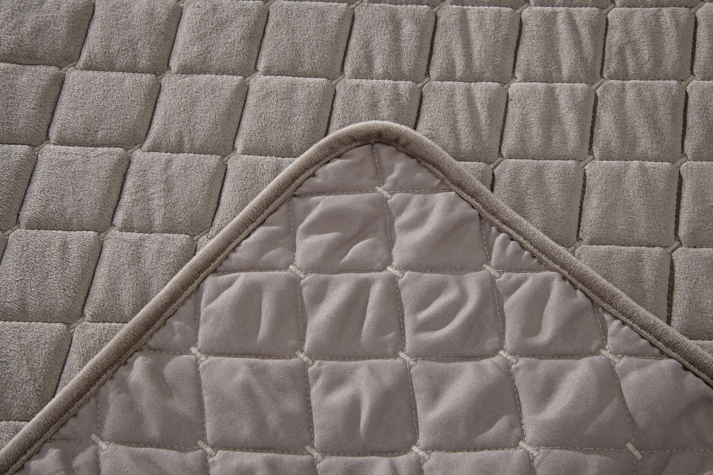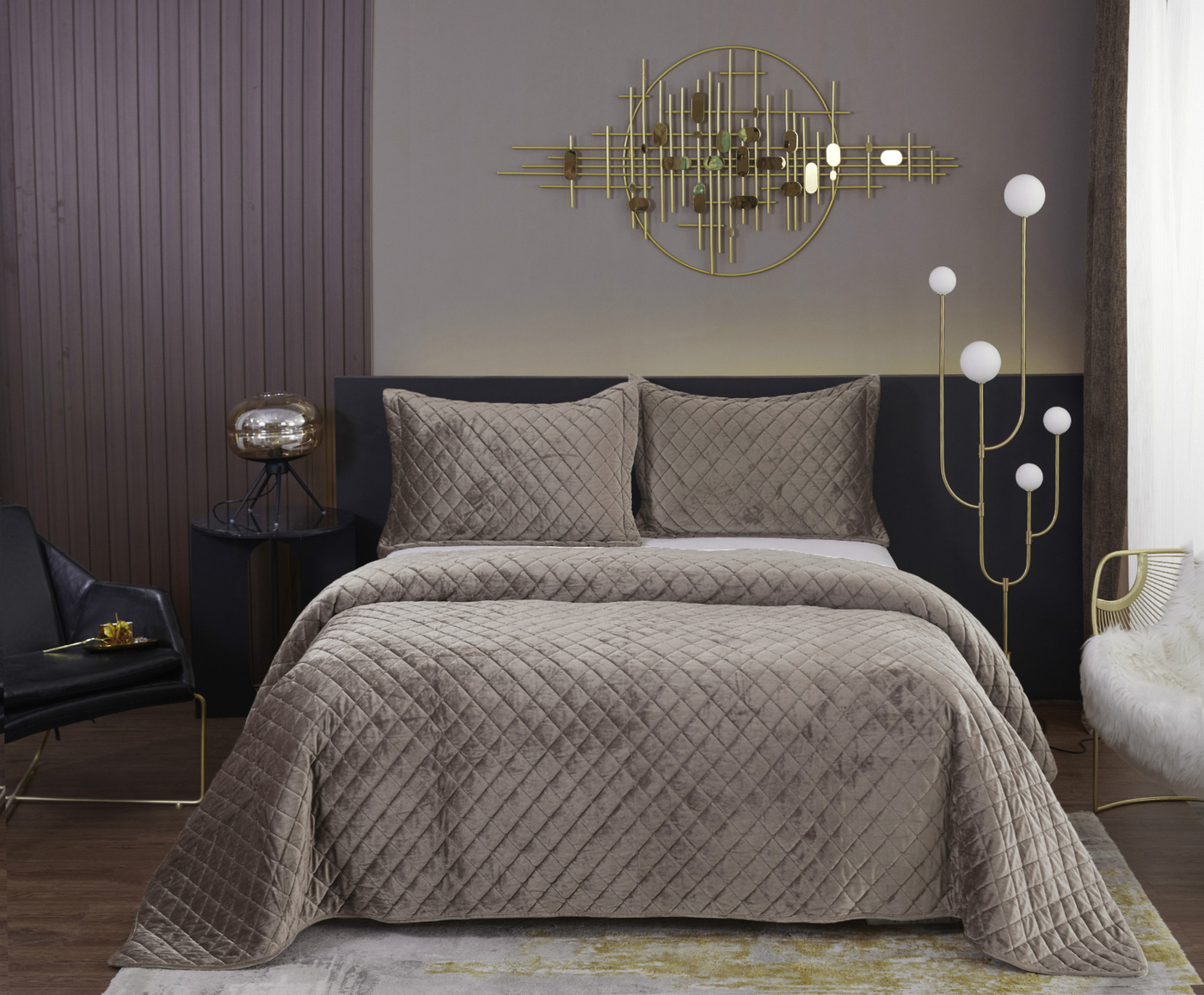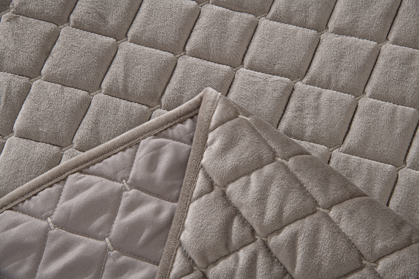 Покрывало стеганное, стежка - ромбТкань: велюр; Состав: 100% вискоза; Комплектация:Покрывало: 240х260см (1);Наволочки: 50х70см (2); Плотность: 200/160/70Уход : Стирка 30-40с°;Упаковка: Текстильная сумка.
