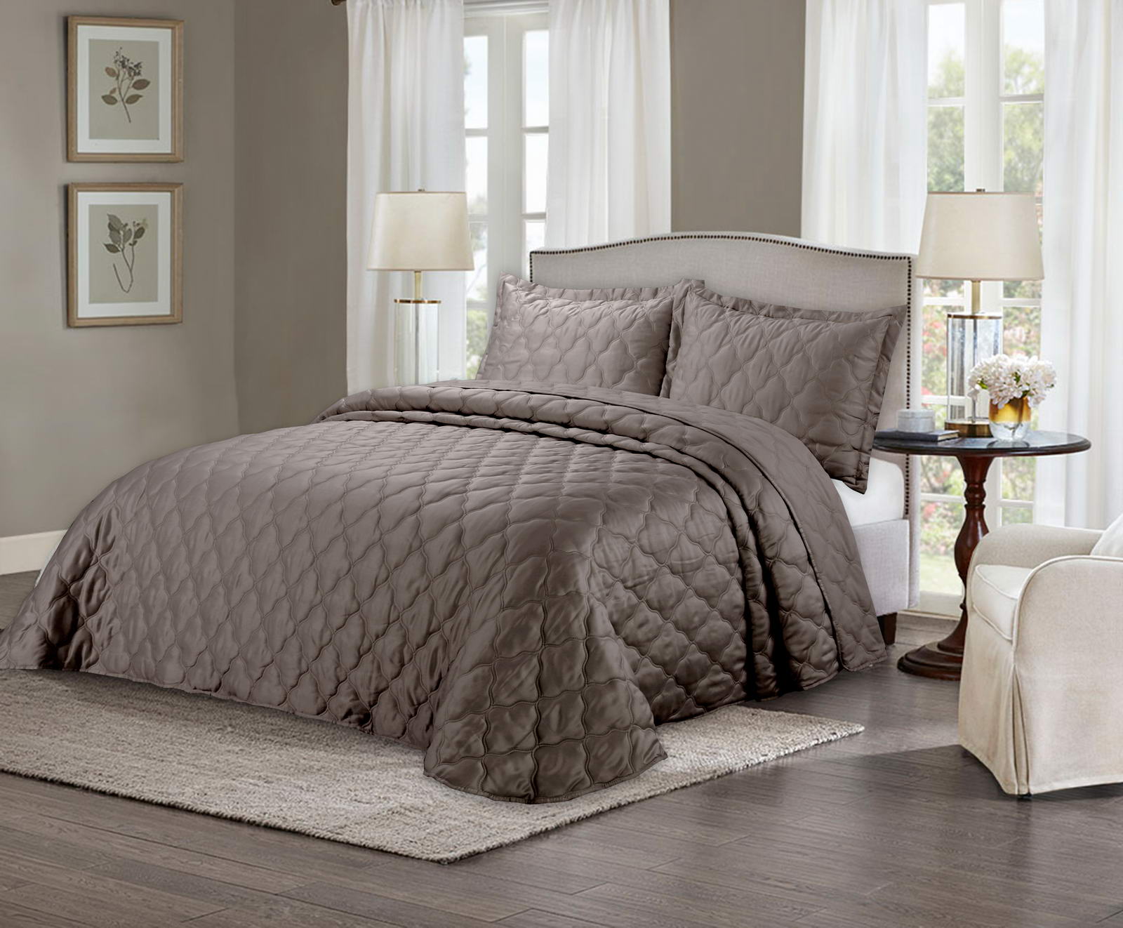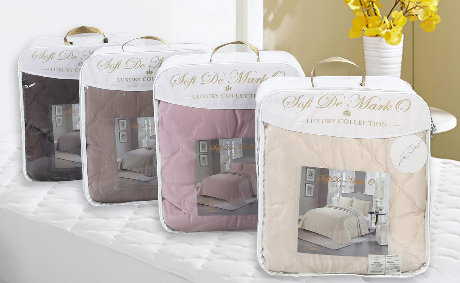 Покрывала СтеганноеКомплектация:Покрывало: 240х260Наволочки: 50х70 (2шт)Ткань: АтласСостав: 70% Вискоза; 30% Хлопка.Упаковка: текстильная сумкаУход. Стирка 30'