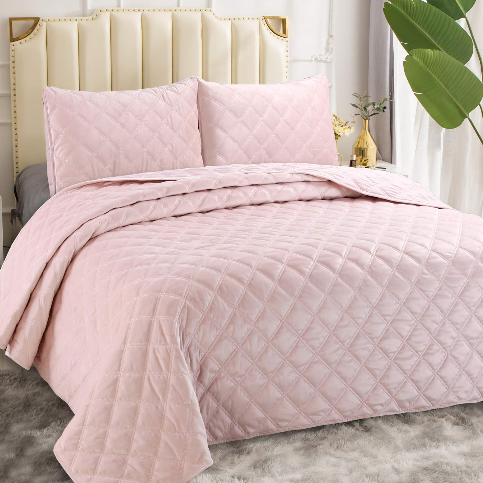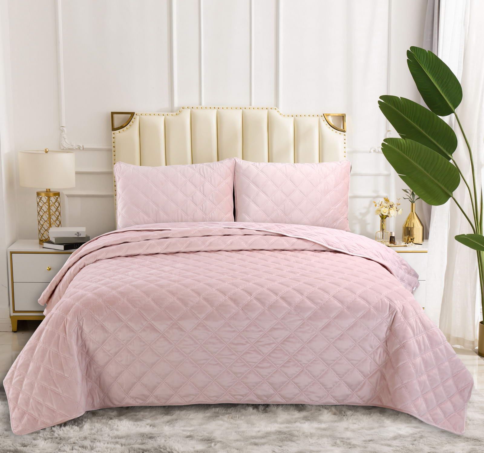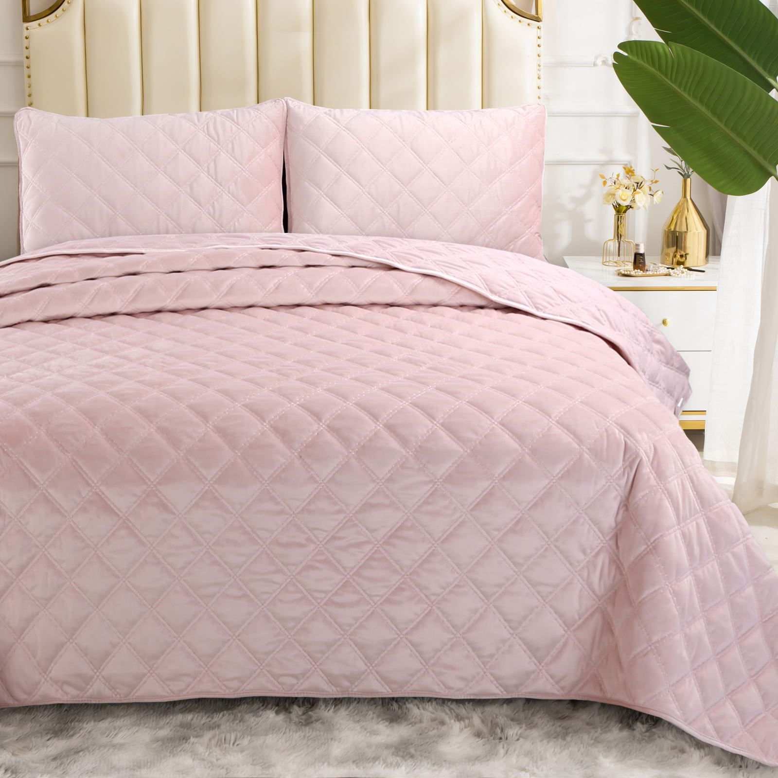 Покрывала стеганное Состав: 70% вискоза 30% хлопок ; Комплектация:Покрывало: 230х250 (1);Наволочки: 50х70 (2); Уход : Стирка 30-40с°;Упаковка: ПВС сумка